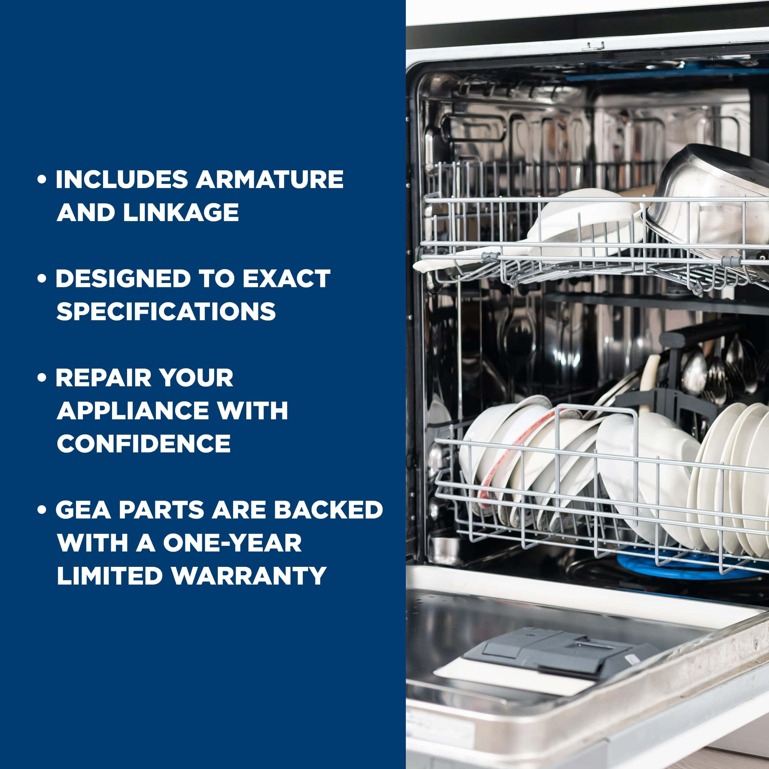 Este ensamblaje de solenoide de drenaje GE Appliances OEM (WD21X10268) de alta calidad abre la válvula del drenaje para vaciar el lavavajillas. El ensamblaje de solenoide de drenaje incluye armadura y enlace. Tenga en cuenta que se recomienda desconectar el electrodoméstico de todos los servicios públicos antes de instalar el ensamblaje de solenoide de drenaje. Modelos compatibles: GSD4112Z05AA, GSC3230Z03WW, GSD4030Z07WW, HDA3520Z05BB, GSD4122Z05BB, GSD2200Z07AD, GSD2220Z07BB, GSD4010Z05AA, GSD2200Z05WH, GSD4020Z05BB, GSC3430Z03WW, GSD2230Z05WW, HDA3230Z07BB, HDA3420Z07BB, GSD3130C07WW, GSD3230Z07WW, GSD4112Z07AA, HDA3430Z05WW, HDA3520Z07BB, GSD4122Z07BB, GSD3210Z05AA, HDA3530Z05WW, GSD4132Z05WW, GSD3220Z05BB, GSD4010Z07AA, GSD2200Z07WH, GSC3200Z03BL, GSD4020Z07BB, GSD2230Z07WW, GSD4030Z05WW, GSD2200Z05AD, GSC3400Z03BL, GSD2220Z05BB, HDA3430Z07WW, GSD3210Z07AA, HDA3530Z07WW, GSD4132Z07WW, GSD3220Z07BB, HDA3420Z05BB, GSD3130C05WW, GSD3230Z05WW, GSD2301V00BB, GSDL112F00BB, GSD2030Z05WW, GSD3930C07WW, GSD5630D00WW, GSDL122F00BB, GSD2301V35BB, GSD3620F00BB, GSD3725D00BB