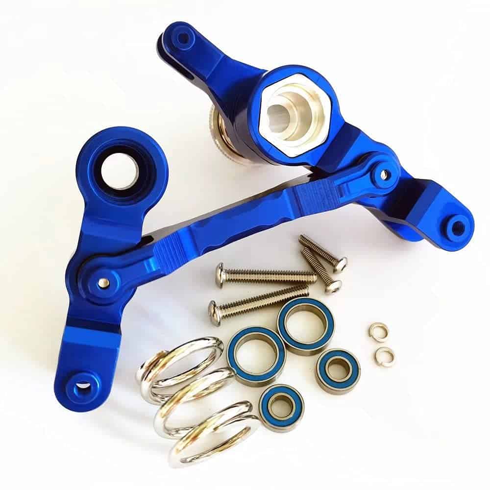 Ensamble de Dirección Ajustable de Aluminio con Rodamientos Azul para Traxxas 1/5 X-MAXX XMAXX 6S 8S 7746. Pieza de actualización para mejorar su vehículo. Viene con rodamientos para una mayor durabilidad. Verifique el número original para asegurarse de que se ajuste a su coche. Incluye 2 resortes de alambre con diferentes diámetros. Eleva el rendimiento de su Traxxas X-MAXX XMAXX 6S 8S 7746.