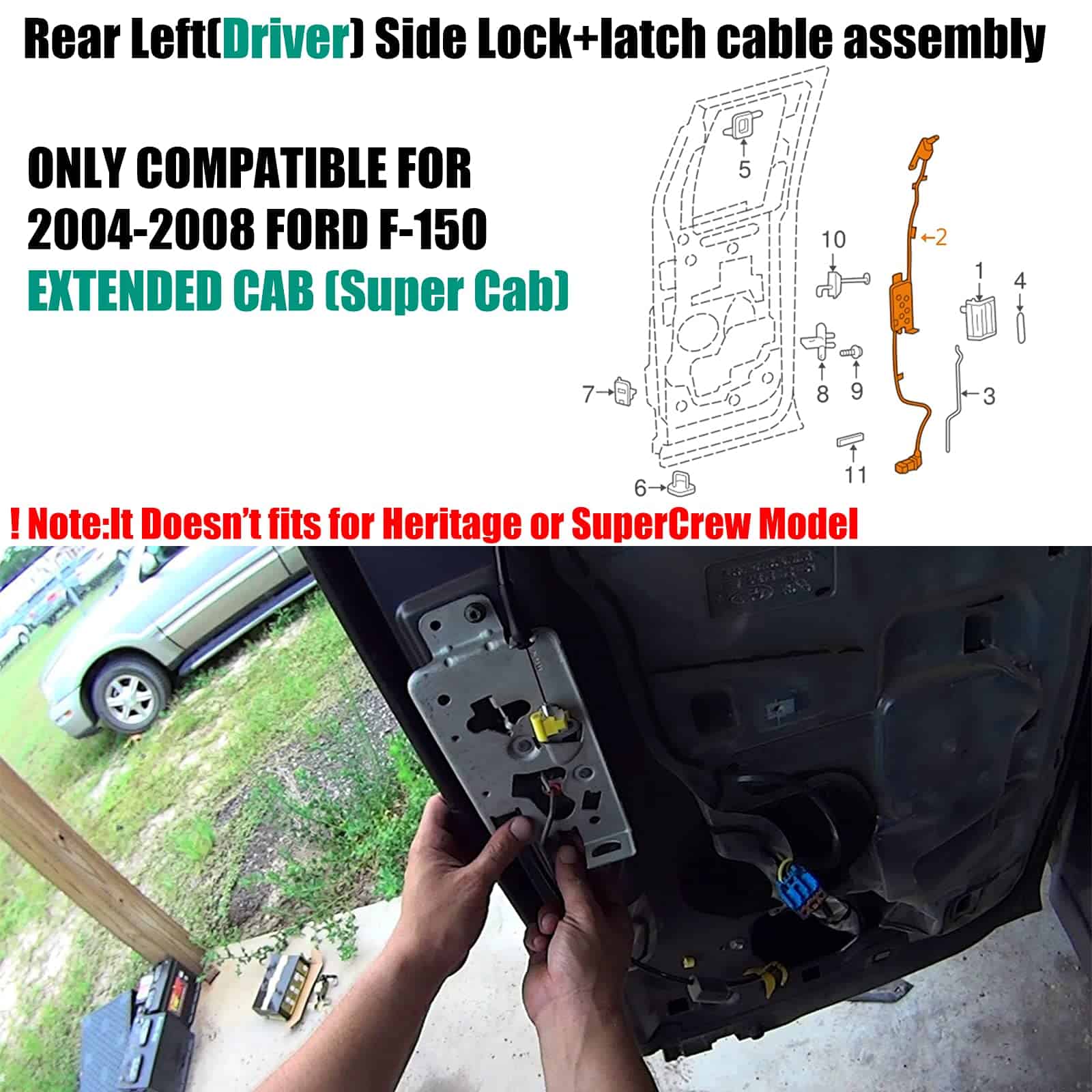 1. Compatible para Ford F-150 Extended Cab Pickup 2004, 2005, 2006, 2007, 2008.