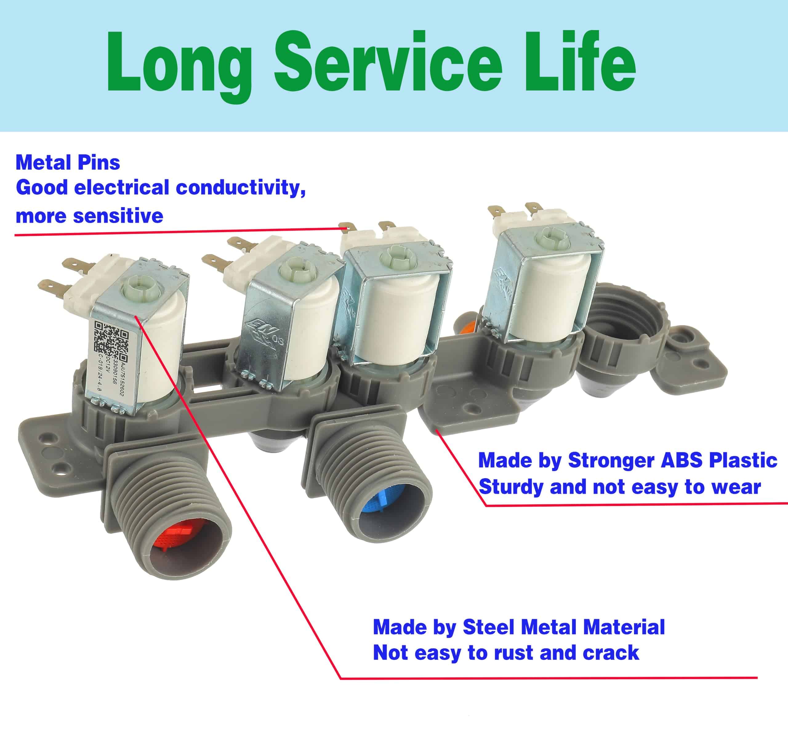 1. Modelos de reemplazo: AJU75152602 la válvula de entrada de agua de la lavadora LG reemplaza estas partes: 5221EA1008S, 4873914, AP6335382, PS12580369, EAP12580369, PD00060681.