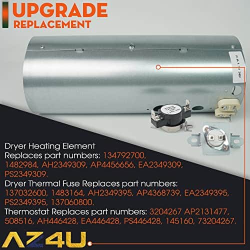 Paquete incluye: 1x Elemento Calefactor de Secadora, 1x Fusible Térmico, 1x Termostato de Límite Alto (3 piezas en total como en la imagen). Nota: – Si no estás seguro de la compatibilidad, contáctanos para obtener asesoramiento, resolveremos tu problema en 24 horas. Para piezas: – Elemento Calefactor de Secadora 137114000, AP4456656, PS2367792, 1531129; – Fusible Térmico 137032600, 137060800, 7137032600; – Termostato de Límite Alto 3204267, 508516, 73204267. Compatible con modelos: Consulta la lista detallada en la descripción larga. Garantía de devolución de dinero: Dentro de los 90 días desde la fecha de compra. Estamos seguros de la calidad de nuestra pieza y puedes confiar en nosotros. Si no estás satisfecho con nuestro producto, se realizará un reembolso.