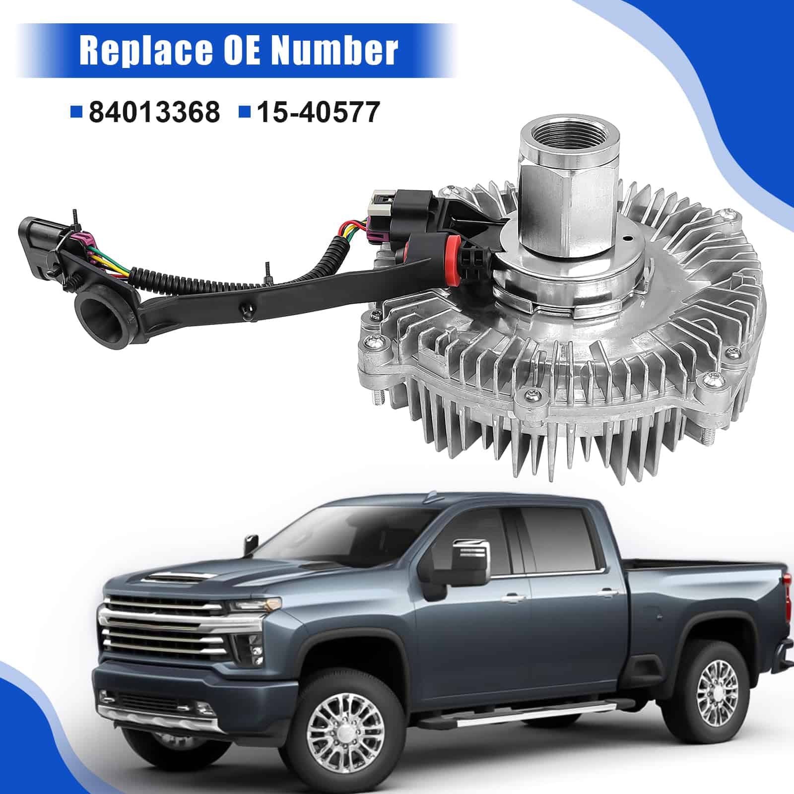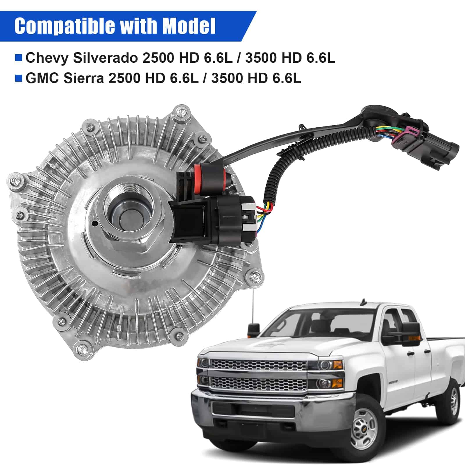 2. AJUSTE PRECISO Diseñado específicamente para el Chevy Silverado 3500, nuestro ensamble del embrague del ventilador con el número de parte 15-40577 y número de modelo 84013368 garantiza un ajuste perfecto y una instalación fácil. También es compatible con el GMC Sierra 2500 HD 3500 HD 6.6L, proporcionando una solución de enfriamiento confiable para su vehículo.