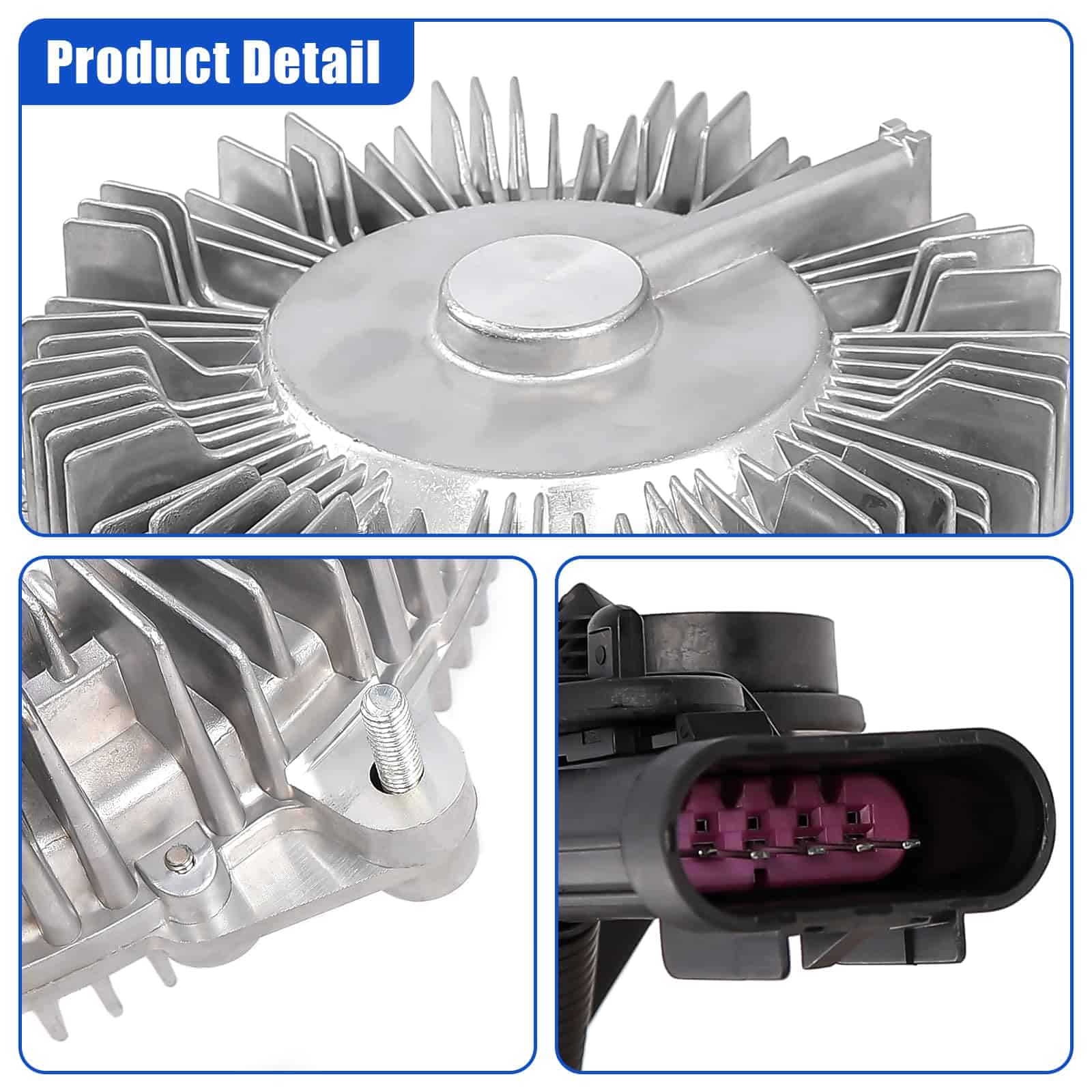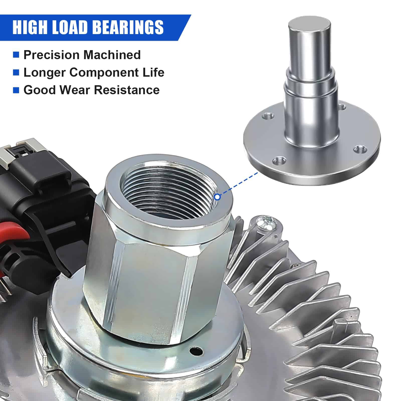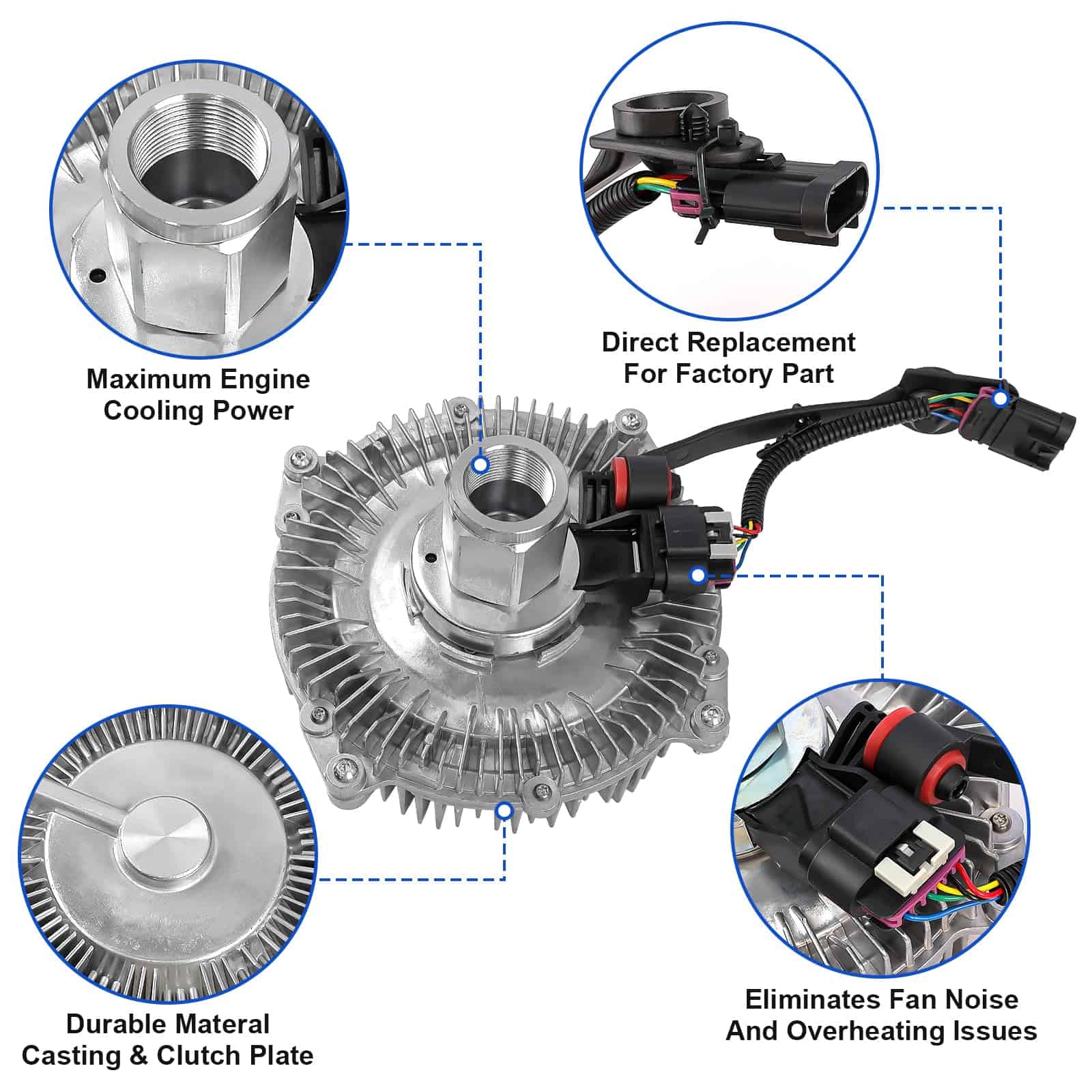 3. ENFRIAMIENTO MEJORADO Diseñado para ofrecer una eficiencia de enfriamiento óptima, nuestro ensamble del embrague del ventilador ayuda a prevenir el sobrecalentamiento y mantiene su motor funcionando sin problemas. Regula eficazmente la velocidad del ventilador de enfriamiento, permitiendo un flujo de aire eficiente y control de temperatura, incluso en condiciones exigentes.
