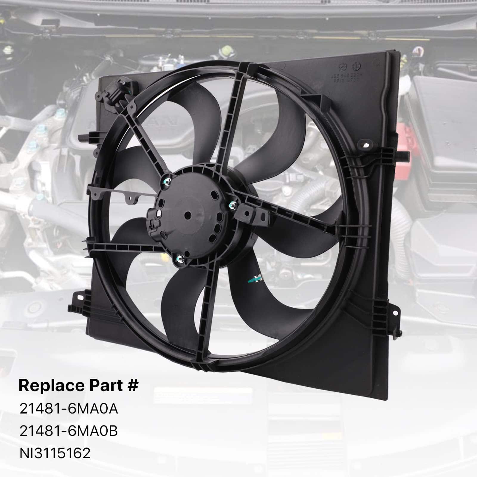 3. REEMPLAZA LOS NÚMEROS DE PARTE – Ensamble de ventilador de refrigeración eléctrico reemplaza Nissan 21481-6MA0A, 21481-6MA0B, NI3115162, 214816MA0A, 214816MA0B. Comúnmente encontrado en Nissan Rogue Sport S, SL, SV 2.0L 2017, 2018, 2019, 2020, 2021, 2022.