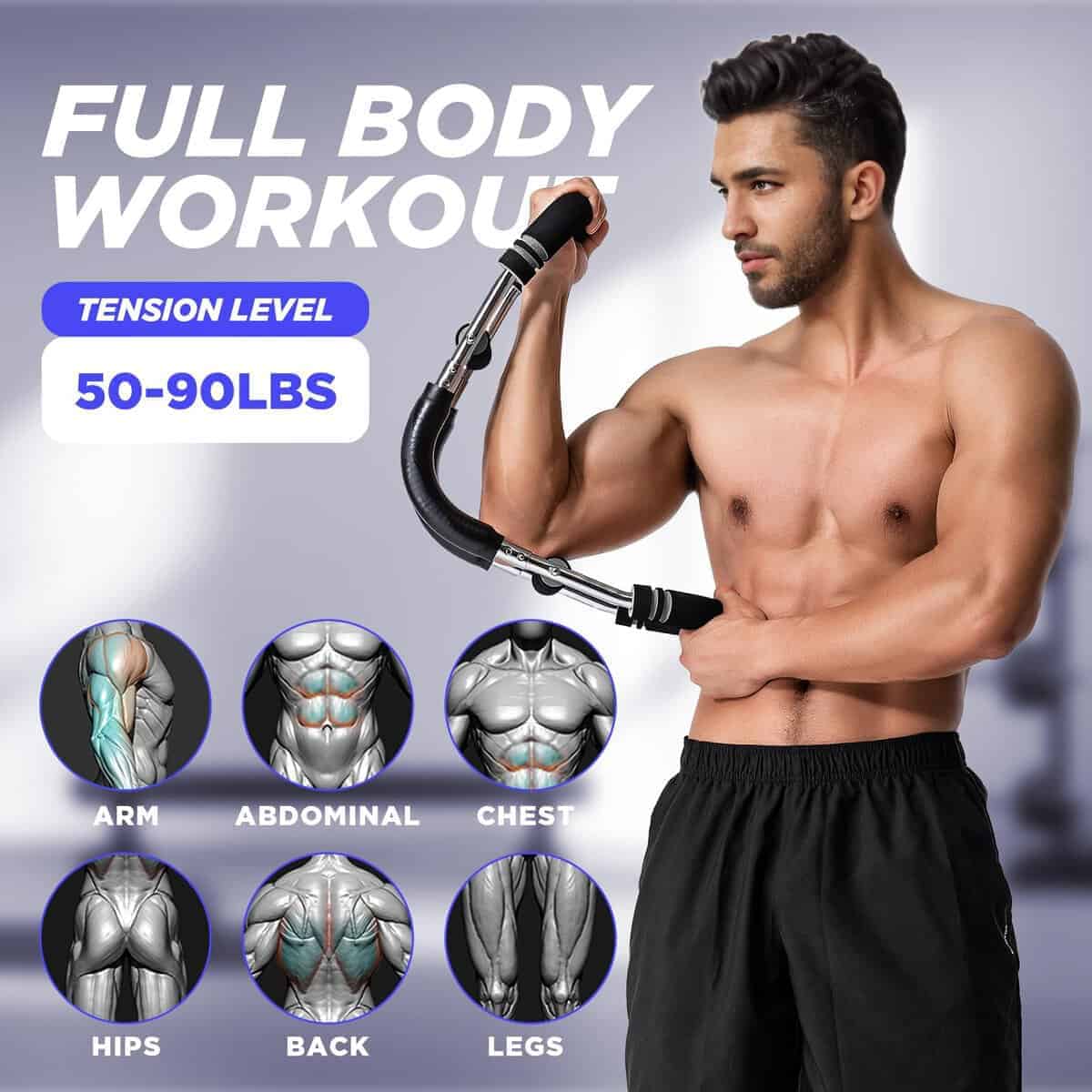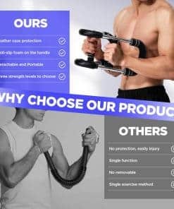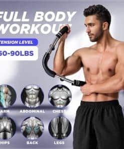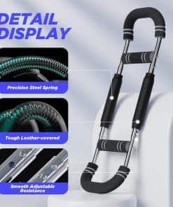 1. EQUIPO DE ENTRENAMIENTO DE FUERZA PARA TODO EL CUERPO: El Entrenador de Brazo Twister de M Mike Sport es una herramienta eficiente para el ejercicio en casa que proporciona un entrenamiento de cuerpo completo. La barra de entrenamiento de resorte de fuerza apunta a múltiples grupos musculares con precisión, incluyendo el pecho, brazos, abdominales, hombros, espalda y músculos de los muslos. 2. CALIDAD ALTA Y MULTIFUNCIONAL: Nuestro Ejercitador de Brazo Twister tiene un diseño en forma de U pensado en su seguridad y comodidad. Cada barra de entrenamiento de resorte de alta resistencia está envuelta con una cubierta de cuero para prevenir lesiones deportivas. El mango está hecho de espuma antideslizante engrosada, que es antideslizante y cómodo. 3. EQUIPO DE EJERCICIO EFICIENTE Y PORTÁTIL: La barra de entrenamiento de resorte portátil es desmontable y de fácil montaje, lo que te permite realizar un entrenamiento de fuerza simple y práctico. Además, no ocupa espacio y puedes usarlo para mantener tus músculos en forma cuando estés al aire libre, viajando, en la oficina o en casa. Es una gran adición a tu gimnasio. 4. INTENSIDAD AJUSTABLE PARA TODOS LOS NIVELES DE FITNESS: Diseñado con tres niveles de intensidad ajustables, el Entrenador de Brazo Twister atiende a usuarios de todos los niveles de fitness. No importa si eres principiante o atleta profesional, puedes ajustar la resistencia para satisfacer tus necesidades de entrenamiento específicas. 5. GARANTÍA DE DEVOLUCIÓN COMPLETA DE DINERO O REEMPLAZO: Nos esforzamos por satisfacer a nuestros clientes y brindar un excelente servicio. Si tienes alguna pregunta o inquietud sobre nuestro producto, no dudes en contactarnos en cualquier momento, y te proporcionaremos una solución satisfactoria en un plazo de 8 horas.