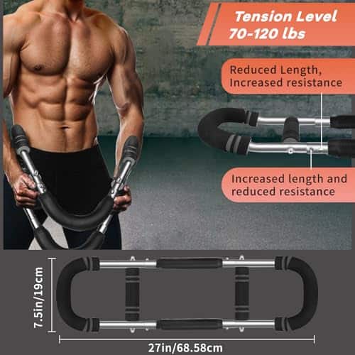 4. Equipo de entrenamiento y ejercicio portátilEl fortalecedor de antebrazos como su entrenador personal y ayudándole a obtener un entrenamiento de pecho intenso; La barra de fuerza trabaja múltiples grupos musculares con precisión, incluidos el pecho, los brazos, los bíceps, los abdominales, los hombros y la espalda, y los músculos de los muslos. Fácil de usar para hombres y mujeres, diseñado para un movimiento suave e ininterrumpido, ofrece un entrenamiento seguro, confiable y efectivo para el entrenamiento de fuerza en casa;.