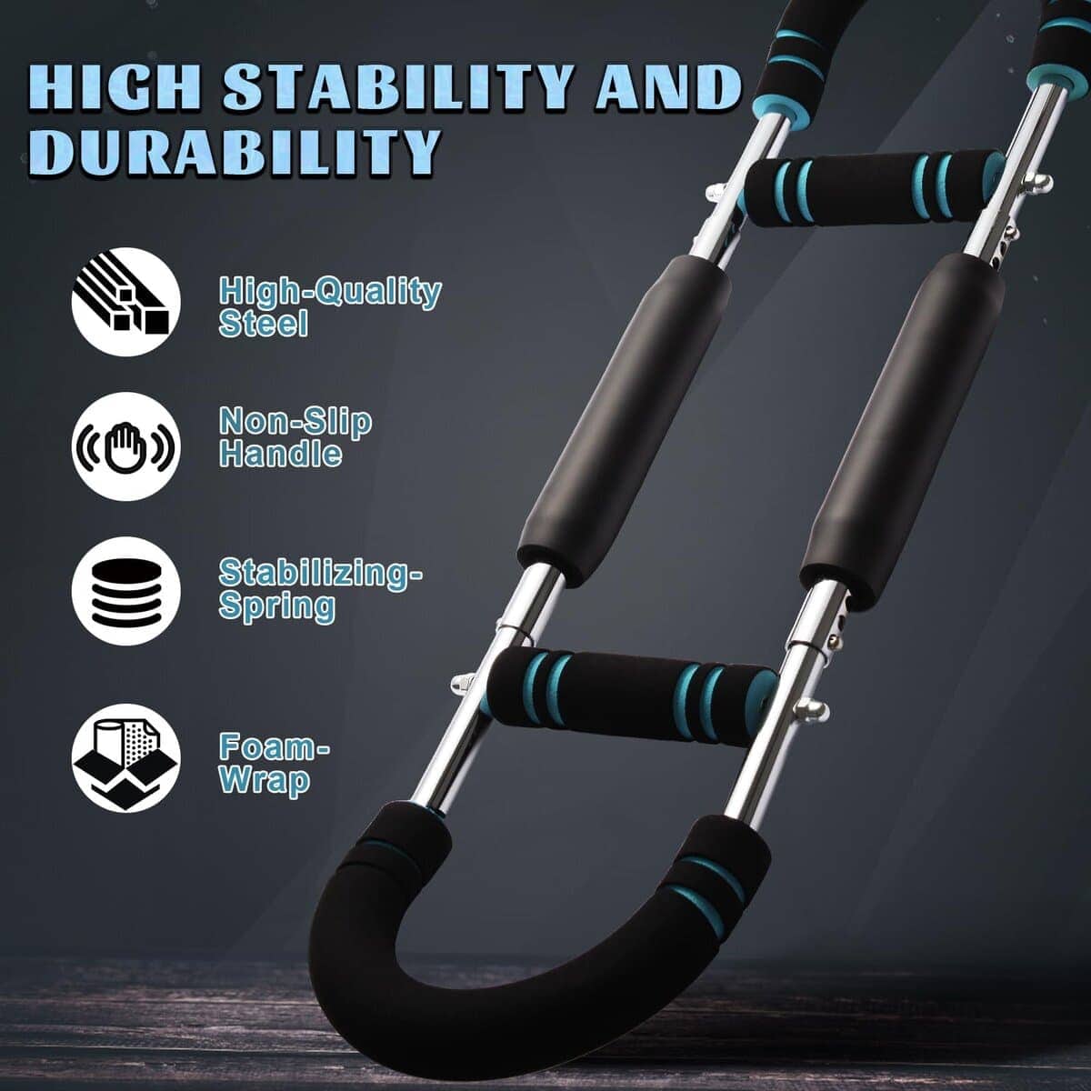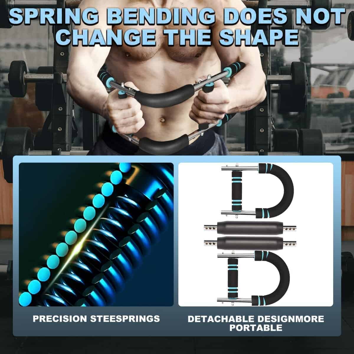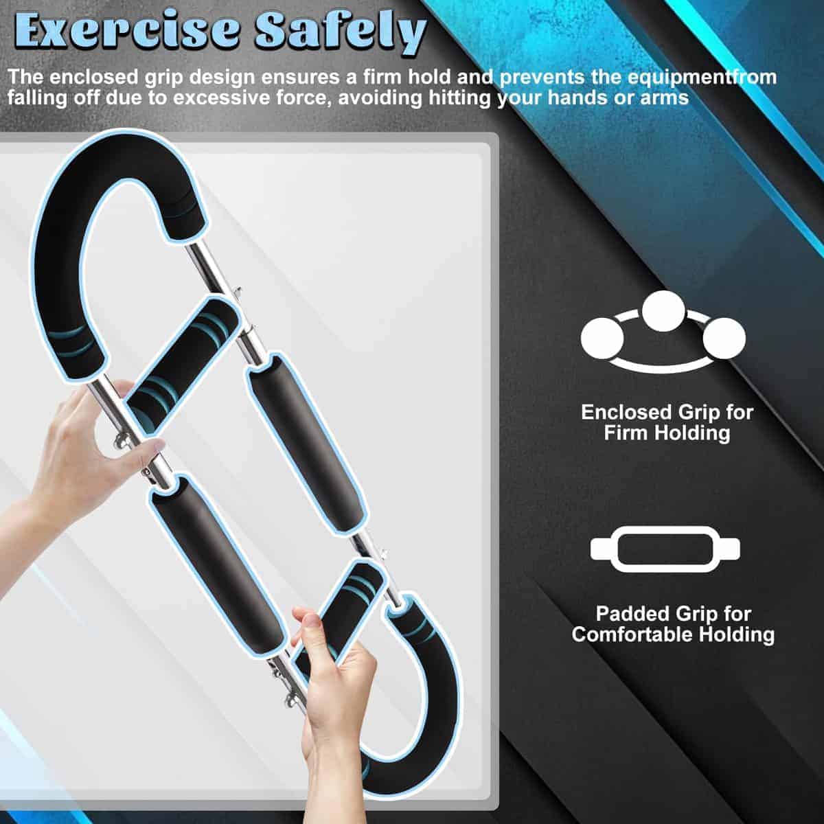 Fabricado con un resistente marco de acero al carbono, este entrenador de brazos es ligero (solo 3.2 lb) y fácil de transportar. Su diseño desmontable y plegable lo hace perfecto para viajar o usar en espacios reducidos. Además, sus agarres ergonómicos con resorte de metal de alta resistencia y espuma antideslizante garantizan un ejercicio suave y seguro.