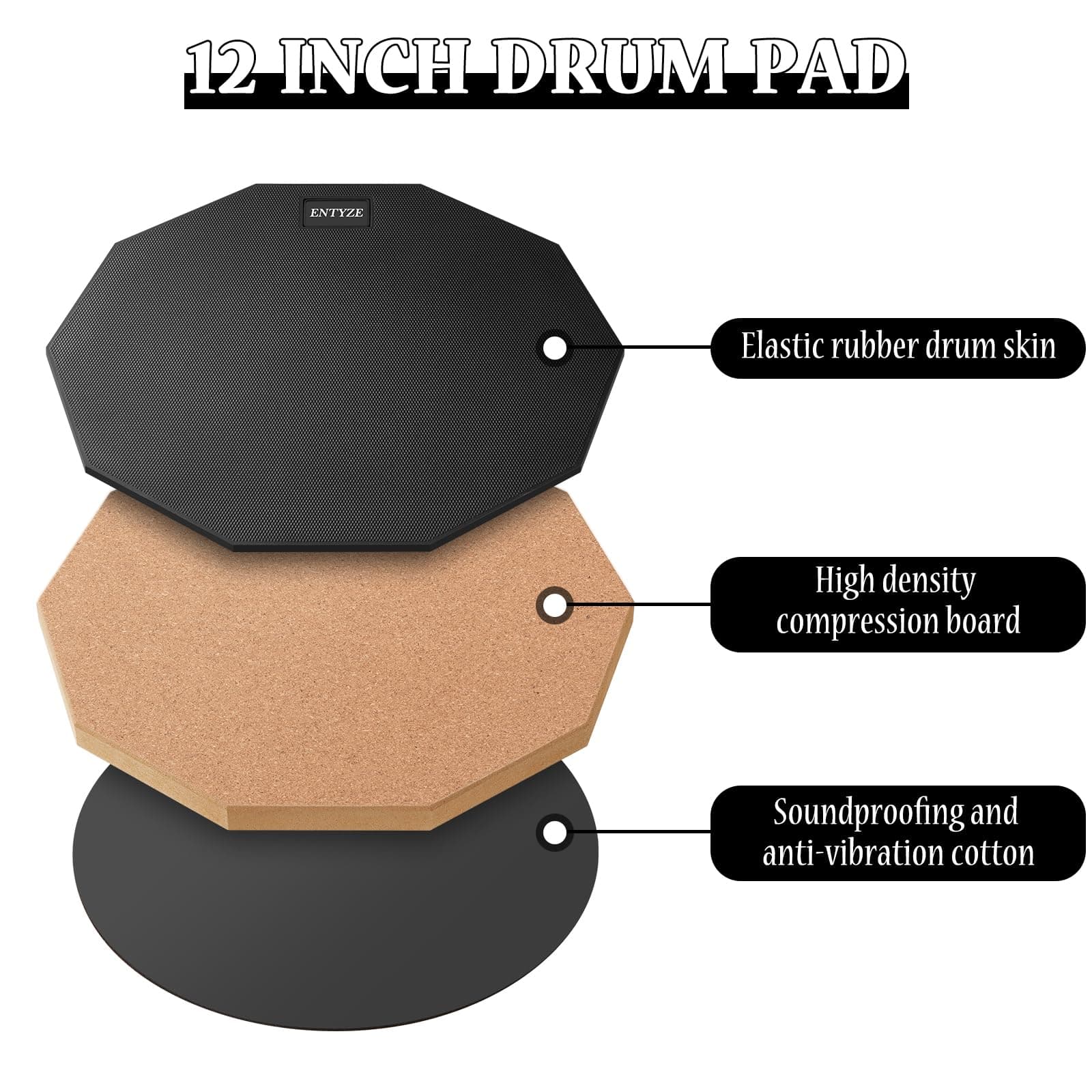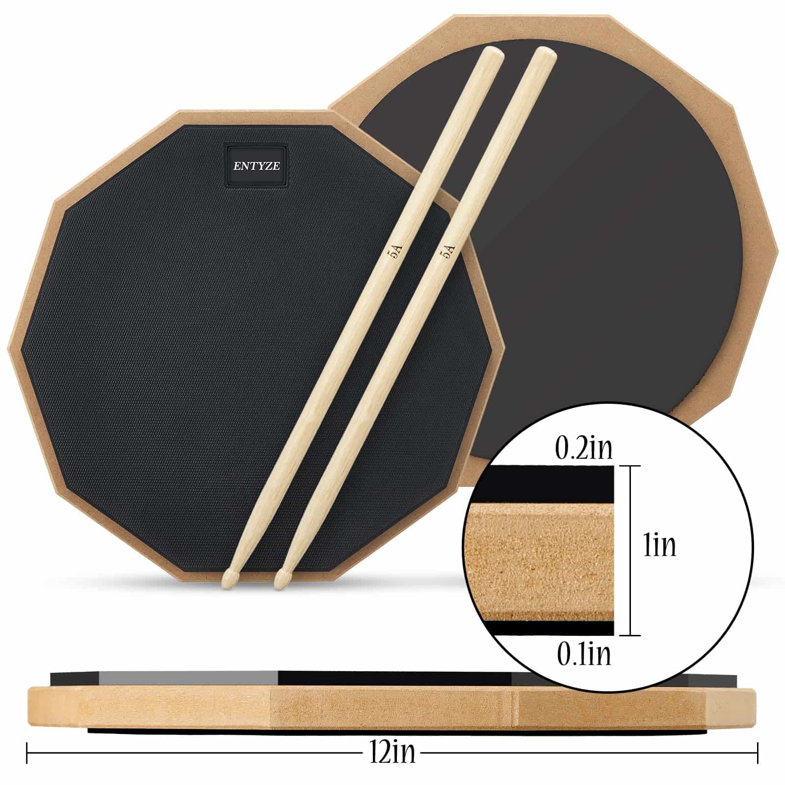 ENTYZE Snare Drum Practice Pad, Pad de -Negro