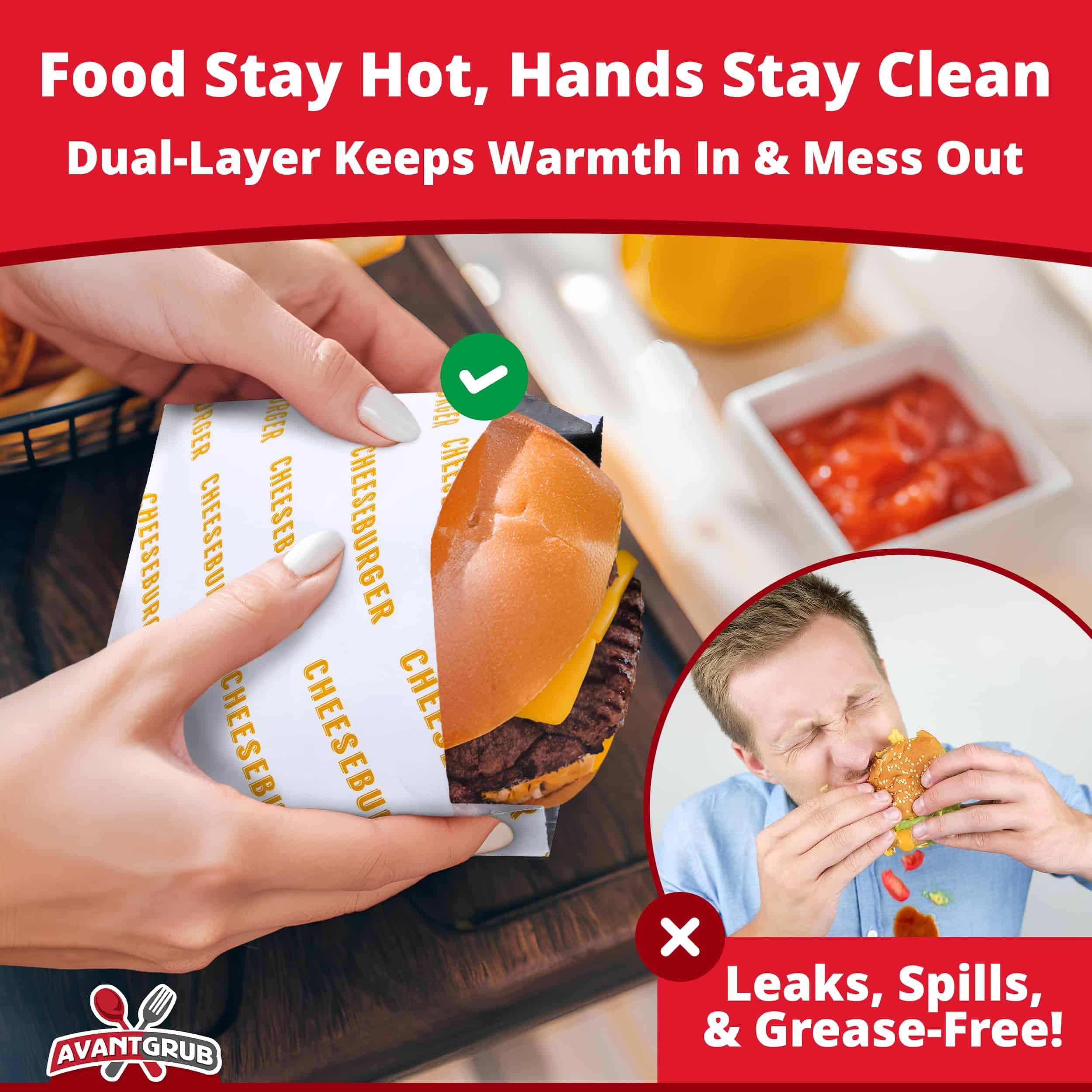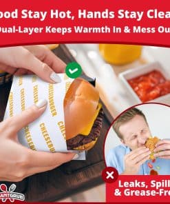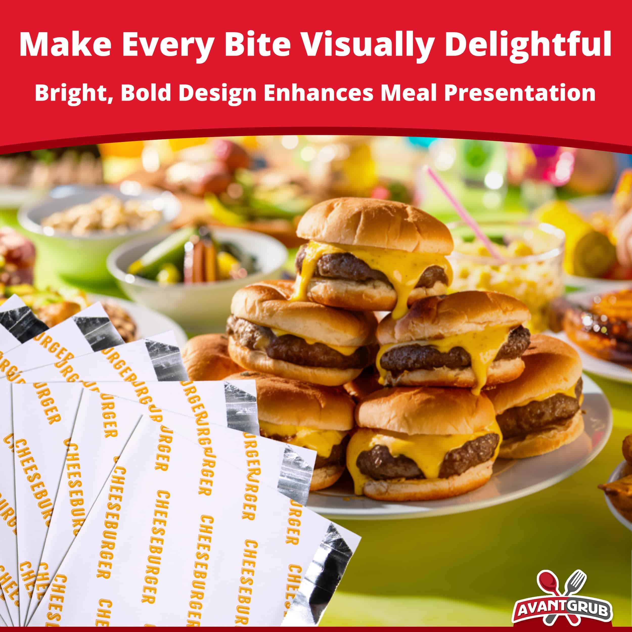 Nuestras envolturas de papel de aluminio para hamburguesas no solo mantienen calientes tus cheeseburgers, sino que también retienen la humedad para evitar que los panes se pongan duros y rancios.