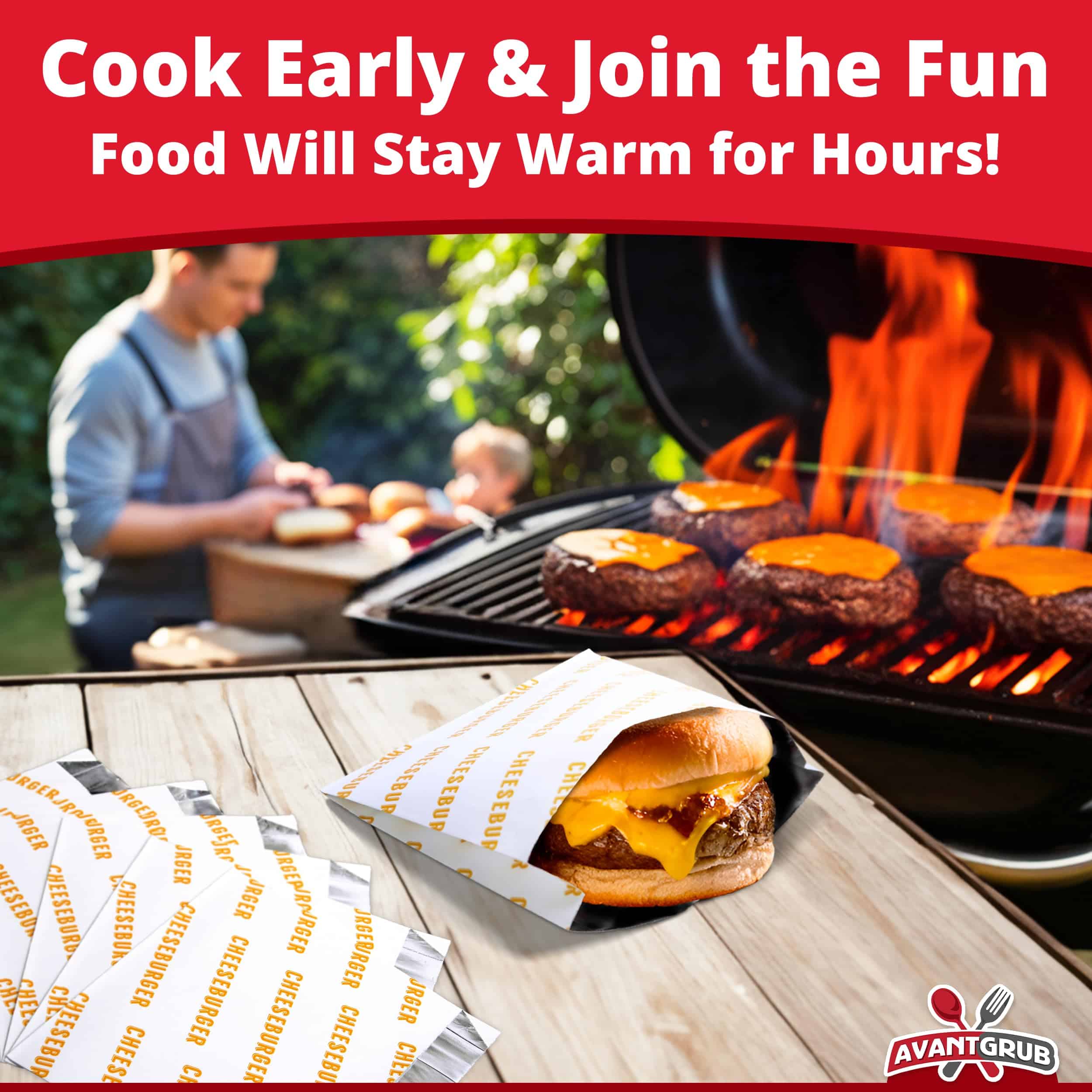 El papel de aluminio laminado es resistente al agua, lo que significa que incluso si el clima cambia, todavía podrás comer hamburguesas calientes y frescas.