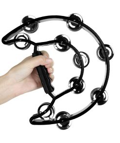 ¡Esta tamborina musical es un instrumento divertido! La forma semicircular de plástico presenta 20 cascabeles. Es de tamaño profesional y también cuenta con un mango de goma confortable para un agarre fácil.