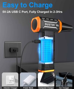 Soplador de Aire Comprimido EOUMJE, un limpiador eléctrico recargable de alta velocidad diseñado para limpiar de manera eficiente y conveniente una variedad de superficies y dispositivos. Con una velocidad de 150,000 RPM, este soplador de aire ofrece un rendimiento potente sin la necesidad de utilizar latas de aire comprimido tradicionales. El diseño compacto y ligero lo hace ideal para uso en el hogar, la oficina, el automóvil y las actividades al aire libre como hacer una parrilla.