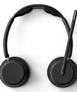 Los auriculares inalámbricos EPOS IMPACT 1061 son unos auriculares premium con micrófono, diseñados para profesionales en oficinas abiertas, trabajo remoto y entornos híbridos. Incluyen un soporte de carga sin contacto, manteniendo tus auriculares siempre cargados sin cables para un espacio de trabajo libre de desorden. Con micrófonos adaptativos IA de EPOS, ofrece una captura de voz líder en la industria, eliminando el ruido de fondo para llamadas nítidas en Microsoft Teams, Zoom y Skype. Con audio super wideband, estos auriculares Bluetooth para el trabajo garantizan una claridad de voz natural, haciendo que las llamadas comerciales y las reuniones virtuales suenen más realistas. La conectividad triple inalámbrica permite cambiar sin problemas entre PC, portátil, smartphone y tableta, asegurando un flujo de trabajo suave e ininterrumpido. Los controles inteligentes e intuitivos te permiten silenciar las llamadas moviendo el brazo articulado, mientras que el soporte de carga sin contacto mantiene tus auriculares cargados durante todo el día. Ya seas un trabajador híbrido, profesional de oficina o agente de servicio al cliente, los EPOS IMPACT 1061 son unos auriculares inalámbricos para PC para el trabajo, Mac, Windows y dispositivos móviles, que ofrecen una calidad de audio excepcional, reducción de ruido y una gestión de llamadas sin esfuerzo.