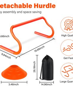 Equipo de Entrenamiento de Agilidad – 10 Vallas de Velocidad y 10 Conos de Fútbol con Bolsa de Transporte para Fútbol, Fútbol Americano y Entrenamientos de Pista, Ideal para Entrenamiento de Velocidad y Agilidad de Atletas. La valla de agilidad tiene una altura de 9 pulgadas, adecuada para personas de diferentes alturas, incluidos adultos y niños. Las vallas de agilidad están diseñadas para ser extraíbles, lo que ahorra significativamente espacio de almacenamiento. La instalación es muy fácil y rápida. Este set de entrenamiento de velocidad y agilidad se puede integrar en cualquier programa de acondicionamiento físico para crear entrenamientos personalizados de la parte inferior del cuerpo para todos los objetivos de entrenamiento, Ideal como equipo de entrenamiento de fútbol, equipo de entrenamiento de béisbol, equipo de entrenamiento de baloncesto, equipo de entrenamiento de pista y campo o equipo de entrenamiento de fútbol. Nuestro equipo de entrenamiento de velocidad y agilidad es perfecto para atletas en una variedad de deportes, incluidos fútbol, fútbol americano, baloncesto, hockey, lacrosse, tenis y bádminton, para aumentar la aceleración, fuerza de piernas y velocidad, habilidades fundamentales, equilibrio, ritmo y control del cuerpo, uso de equipo de educación física. Este equipo de entrenamiento de velocidad y agilidad es ligero, fácil de almacenar, puedes guardar fácilmente las vallas de velocidad deportivas en la bolsa de transporte para entrenar en cualquier momento y en cualquier lugar que desees. Fáciles de configurar y usar, estas vallas de agilidad son ideales para atletas, y beneficiosas para adultos mayores para hacer ejercicio, mantener el equilibrio y la movilidad.
