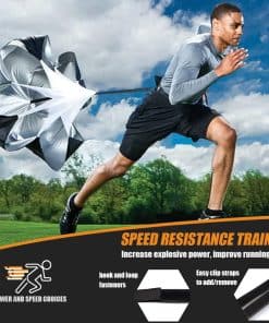 2. Paraguas de Resistencia: Nuestro diseño mejorado de paracaídas de carrera puede producir una fuerte resistencia al viento, lo que lo hace muy efectivo para aumentar tu velocidad de carrera. Deja que esas fibras musculares de contracción rápida trabajen y obtén la potencia más explosiva, dejando a todos tus oponentes en apuros. El cinturón de cintura seguro y ajustable se sujeta a tu cintura con un botón y se puede ajustar hasta 42 pulgadas. ¡Domina cualquier deporte o juego, ya sea fútbol, tenis, fútbol americano, eventos de atletismo o cualquier otro!