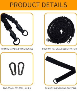 Equipo de entrenamiento de natación Ycendelion, diseñado para mejorar tu fuerza, potencia y agilidad en el agua. El tubo de la banda tiene una resistencia de 15lb, fabricado con caucho natural para evitar roturas. Además, tiene una capa de tela que añade 5lb a la banda, logrando un total de 20lb de resistencia. Ideal para nadadores que buscan mejorar su rendimiento físico a través de entrenamientos de natación. El cinturón de cintura es ajustable en un rango de 25.5 a 42 pulgadas, siendo adecuado para nadadores principiantes o experimentados, tanto hombres como mujeres. Fácil de usar y de configurar, sin necesidad de accesorios adicionales. Perfecto para su uso en las piscinas de casa o al aire libre. Los clips pueden girar en todas las direcciones para adaptarse a cualquier postura de nado. Incluye 1 banda de resistencia (8.2ft/20lb), 1 cinturón de cintura ajustable, 1 correa de fijación, 2 clips y 1 bolsa de transporte para facilitar el almacenamiento y transporte del set de entrenamiento.