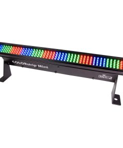 El COLORstrip Mini es una luz de lavado lineal LED controlada por DMX de 19 pulgadas de largo y cuatro canales. Los colores estáticos y la mezcla de colores RGB se pueden hacer con o sin un controlador DMX. ¡Además, incluye apagado, estática, regulador y estrobo! ¡Las características adicionales incluyen programas automáticos y activados por sonido incorporados a través de maestro/esclavo o DMX. ¡Hasta 31 unidades pueden ser enlazadas maestro/esclavo para un efecto de pasarela de cambio de color!.