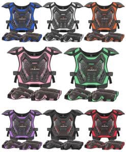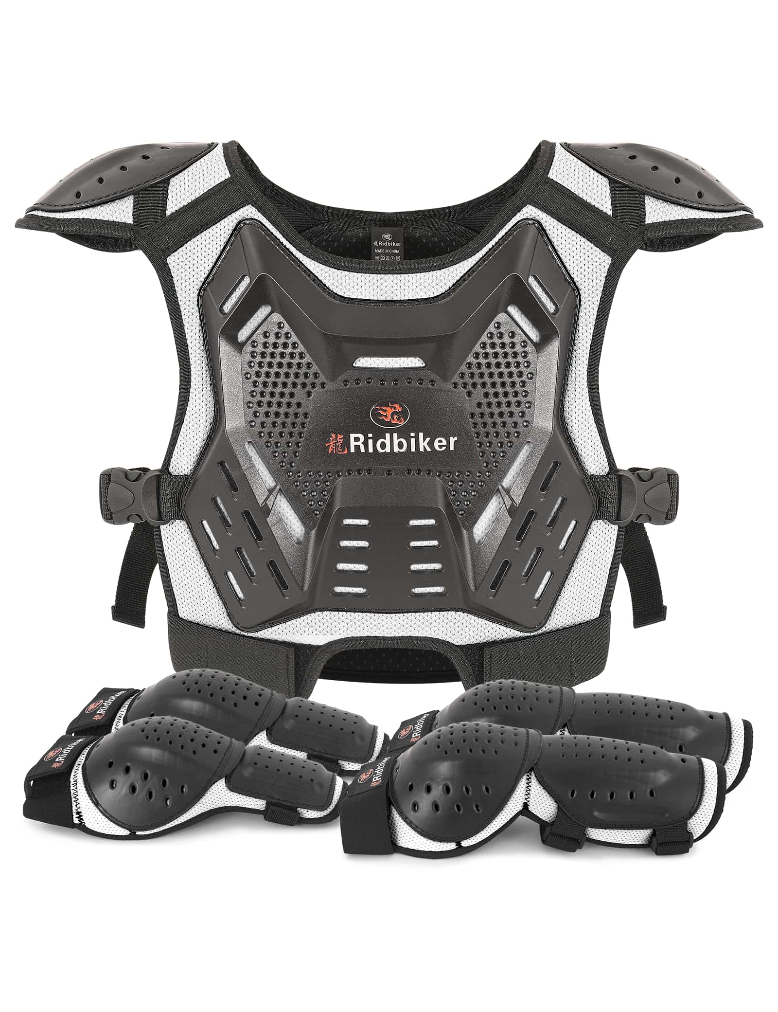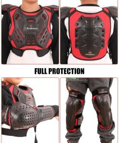 El equipo de motocross para niños incluye un chaleco de armadura con partes clave de PP en la parte frontal y trasera, proporcionando una protección efectiva del cuerpo. El interior cuenta con parches de espuma de alta densidad de 8mm que absorben los impactos, malla transpirable y suave al contacto con la piel. Las rodilleras y coderas en este set están diseñadas con protección PP sólida en 3D, tienen un interior suave y cómodo, y vienen con tres correas elásticas ajustables para colocarlas rápidamente. También hemos mejorado la longitud de las correas para ajustarse al crecimiento de su hijo. Este equipo de motocross para niños tiene un protector de vientre en forma de U, permitiendo un manejo sin restricciones incluso al inclinarse. Con su cinturón elástico y hebilla ajustable, el diseño es flexible, facilitando poner, quitar y limpiar. Adecuado para Motocross, Escalada, Patinaje, Nieve, Patinetes, Off-road, ATVs, UTV, y cualquier deporte al aire libre. También es perfecto como regalo para cumpleaños, día del niño, acción de gracias y otras ocasiones especiales.