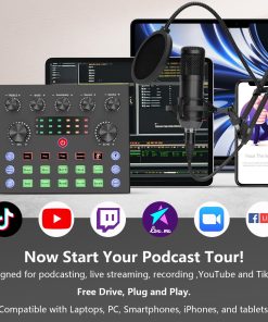 El conjunto de equipo de podcast viene con una interfaz de audio de alta calidad, un micrófono de condensador profesional y todos los accesorios necesarios para comenzar a crear contenido de podcast de alta calidad. Con la capacidad de cambiar de voz y añadir efectos de sonido, este equipo ofrece una amplia gama de opciones para personalizar tu contenido. La compatibilidad con una variedad de dispositivos y aplicaciones hace que sea fácil integrar este equipo en tu proceso de creación de contenido en diferentes plataformas. El paquete completo incluye todo lo que necesitas para empezar a grabar tus podcasts o transmisiones en vivo de manera profesional y sin problemas. ¡Haz que tu contenido se destaque con este equipo de podcast todo en uno!
