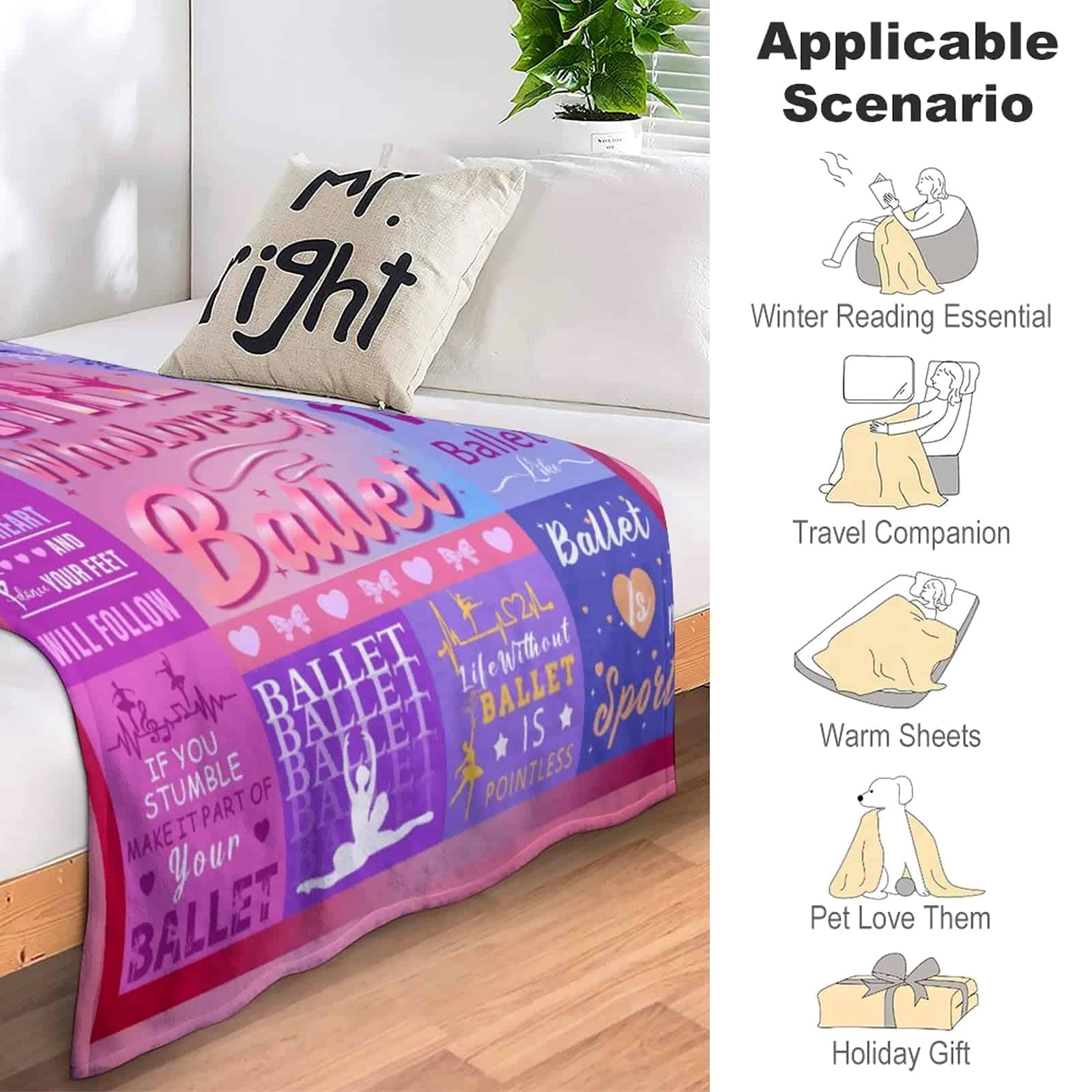 Manta de lanzamiento con patrón de Danza de Ballet impreso en 3D, colores vívidos, los regalos perfectos para adolescentes, niñas, mujeres o maestras, también es un buen regalo para bailarines.