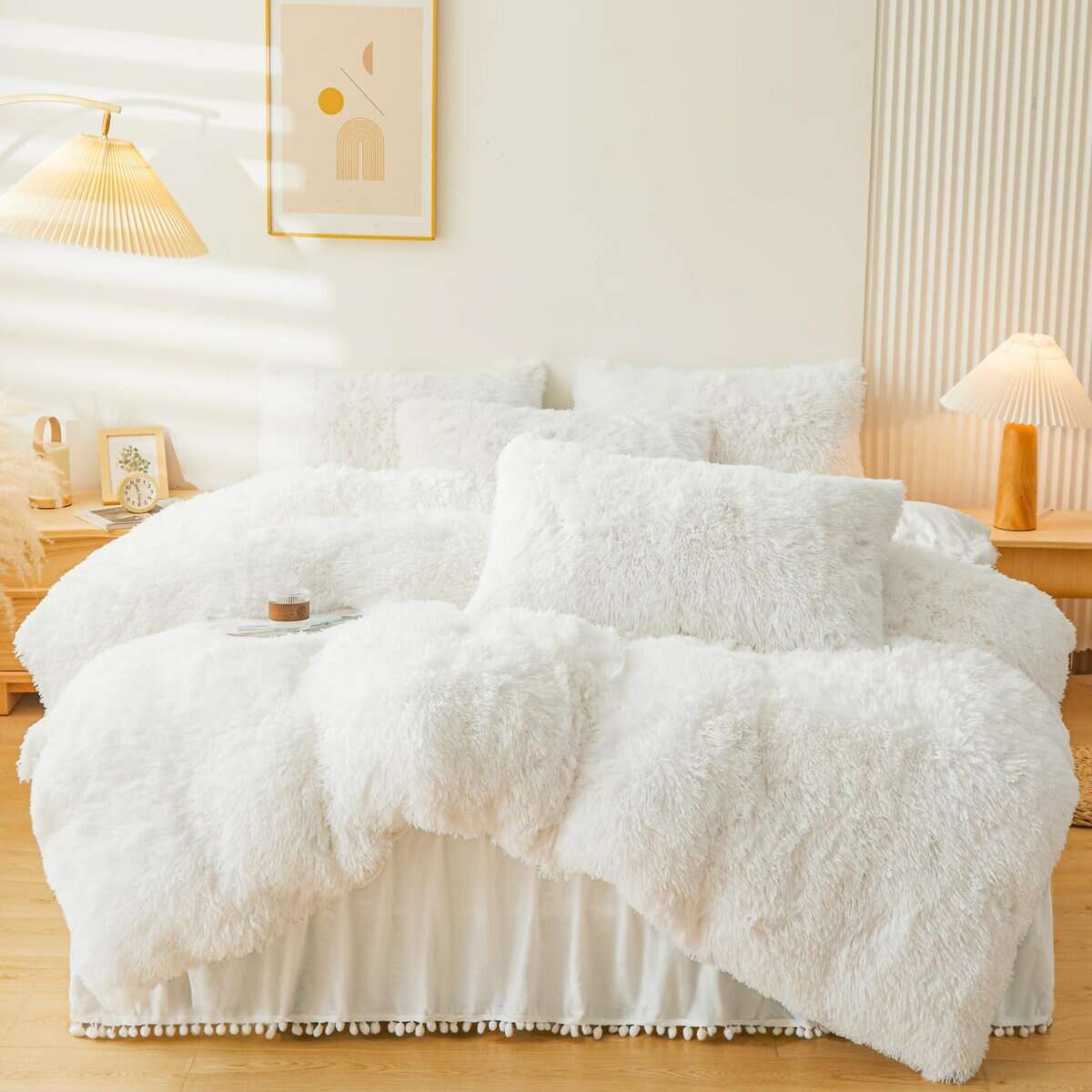 ERLOXO Juego de Funda de Edredón Blanco Peluda tamaño King