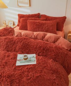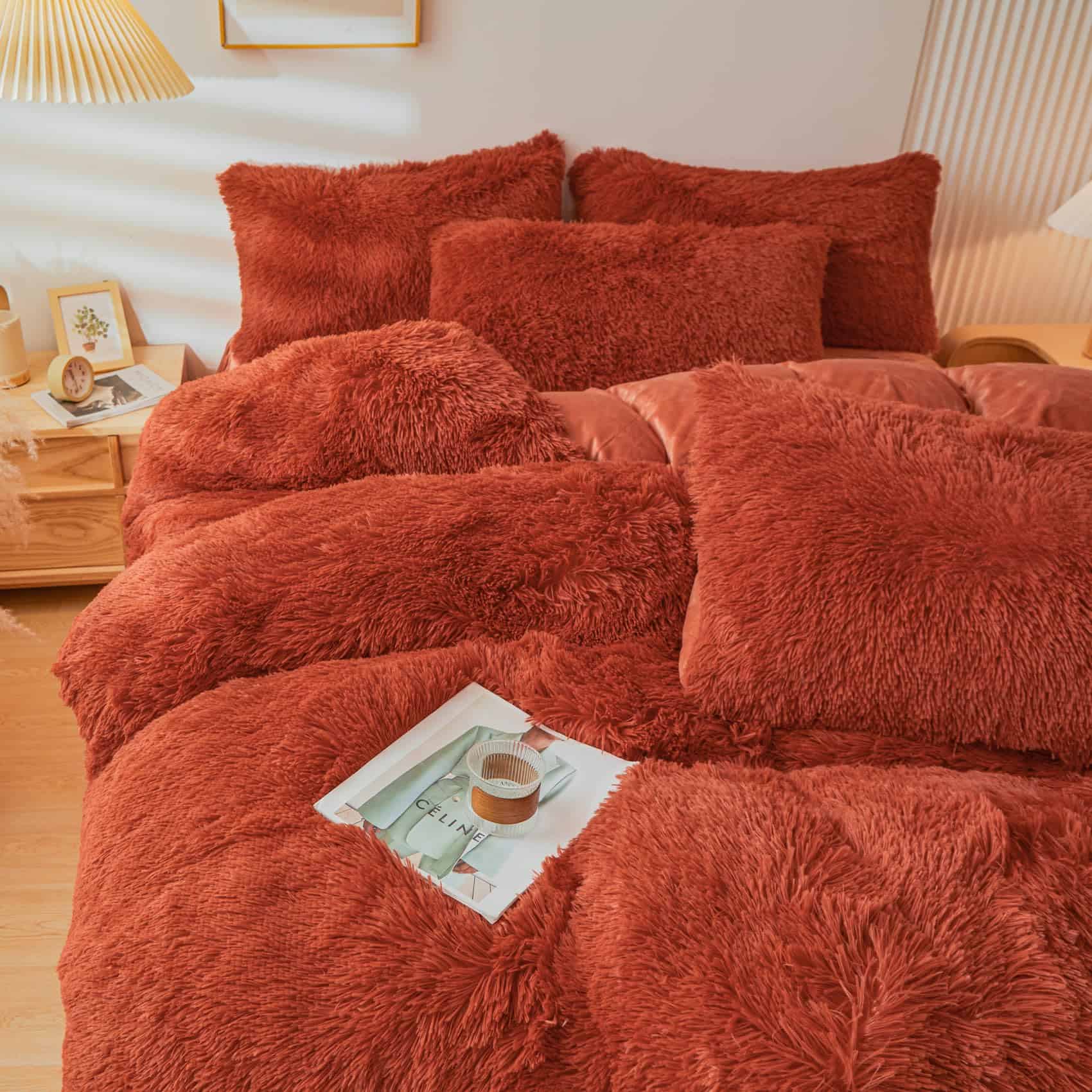 ERLOXO Juego de Funda de Edredón de Peluche Color Terracota