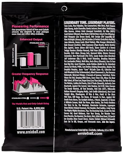 Las cuerdas para bajo eléctrico Ernie Ball Cobalt Slinky ofrecen un rango dinámico extendido, una respuesta armónica increíble, un incremento en los graves, y agudos nítidos y claros. El cobalto genera una relación magnética más fuerte entre las pastillas y las cuerdas que cualquier otra aleación previamente disponible. Las cuerdas para bajo eléctrico Cobalt Slinky también son suaves y sedosas al tacto, lo que facilita el doblado de cuerdas. Calibres .045, .065, .080, .100.