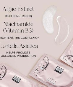 3. Ingredientes científicamente avanzados: Formulados con extracto de algas rico en nutrientes, niacinamida, centella asiática, alantoína e isomerato de sacárido, estos parches para ojos ofrecen beneficios para la piel y resultados clínicamente comprobados.