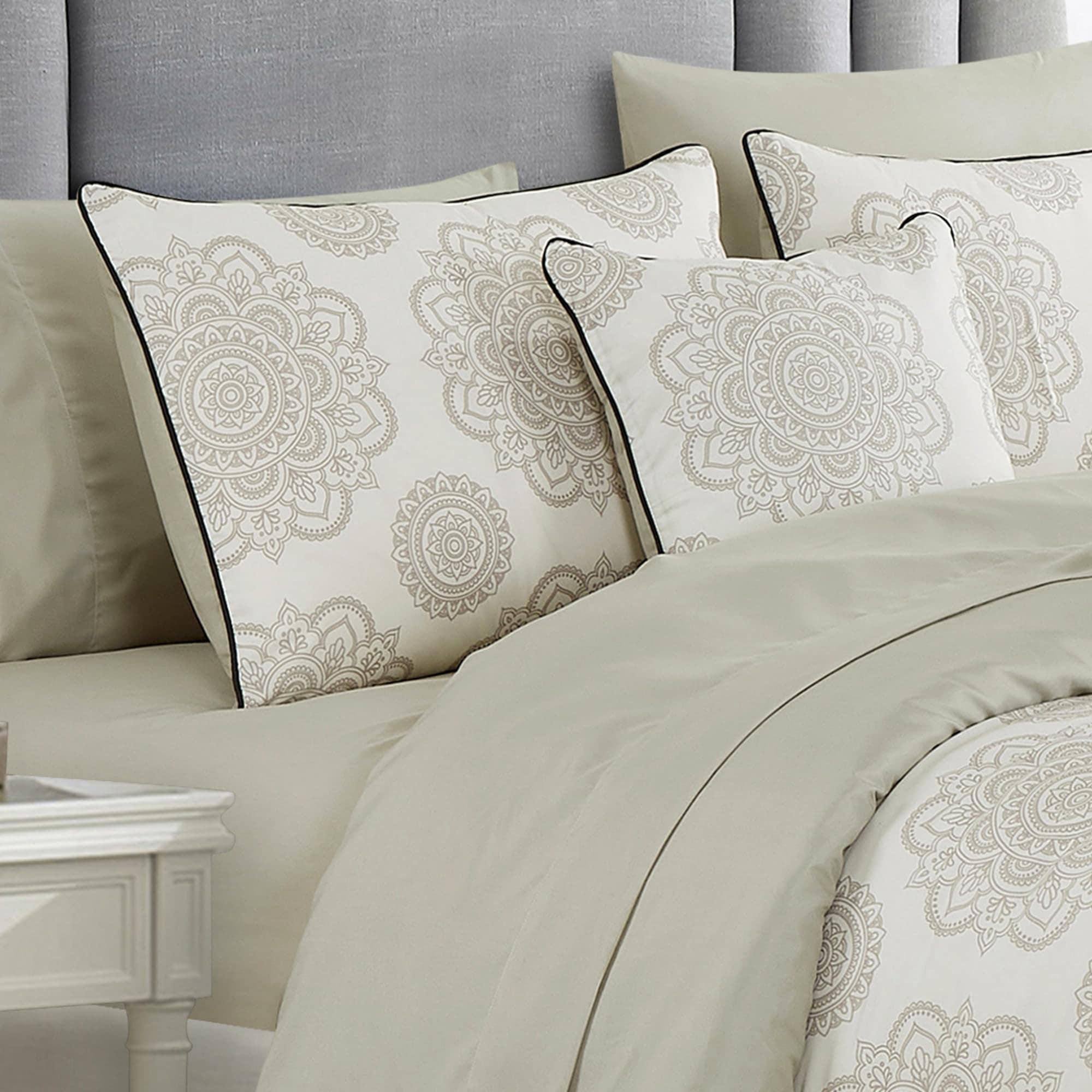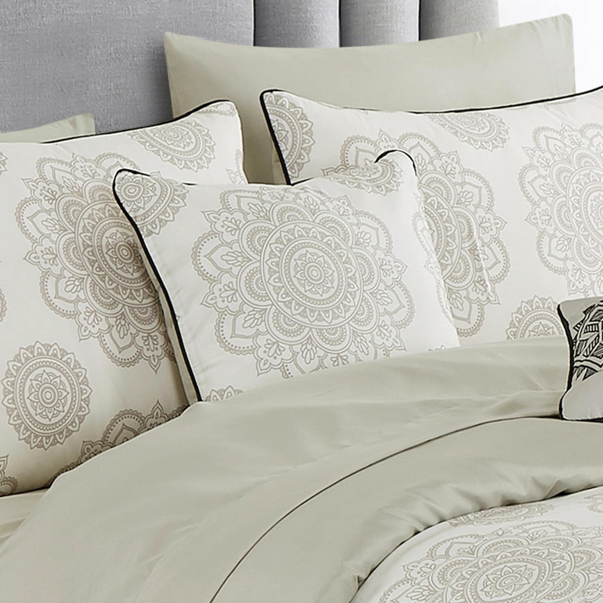 ESCA Juego de Cama 9 Piezas Aziza Beige Gris y Negro con