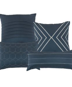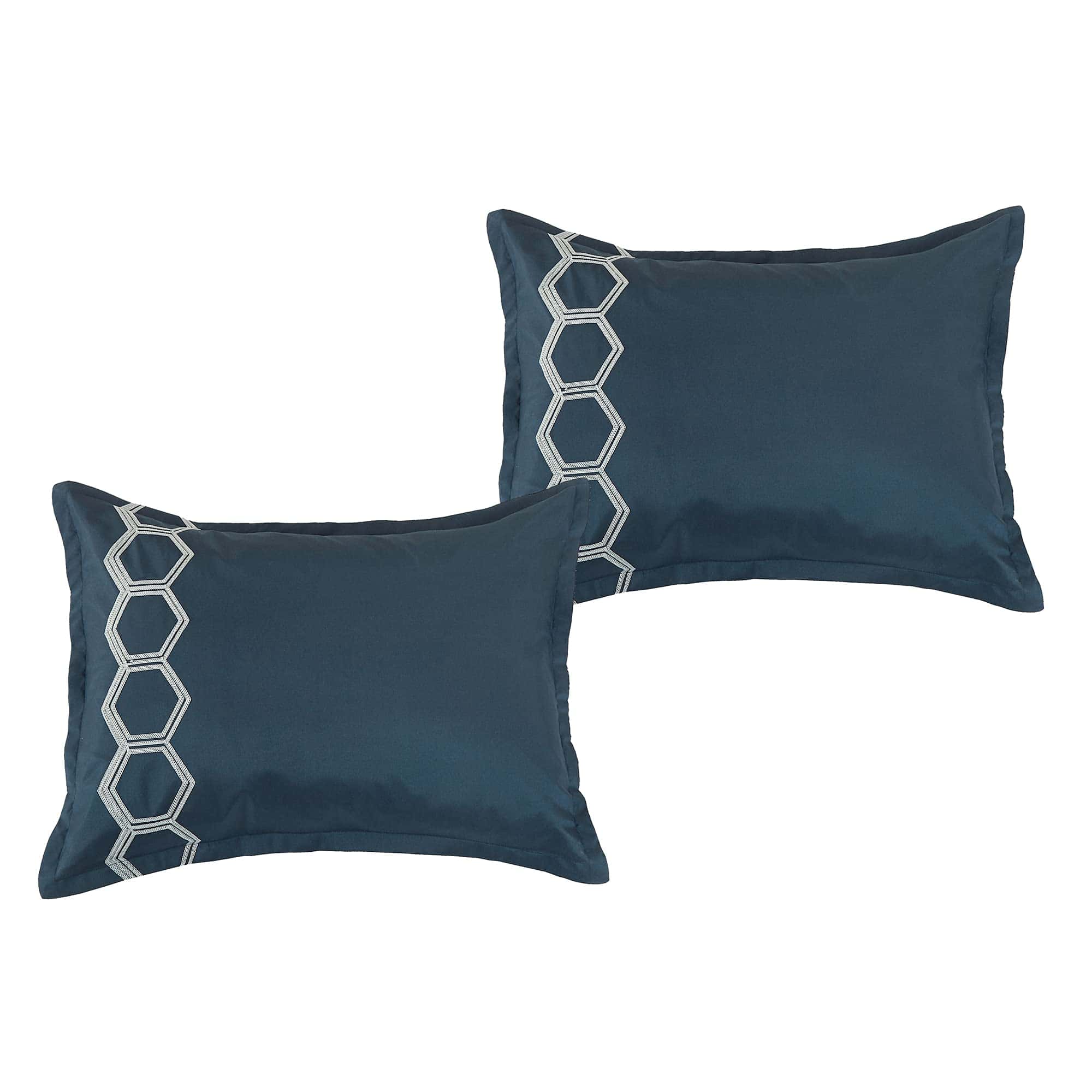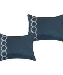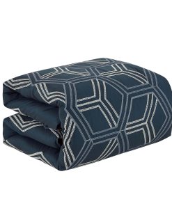 2. Diseño elegante: Con un diseño elegante en azul con patrones geométricos y bordados intrincados, este juego reversible agrega un toque de moda a la decoración de tu dormitorio.