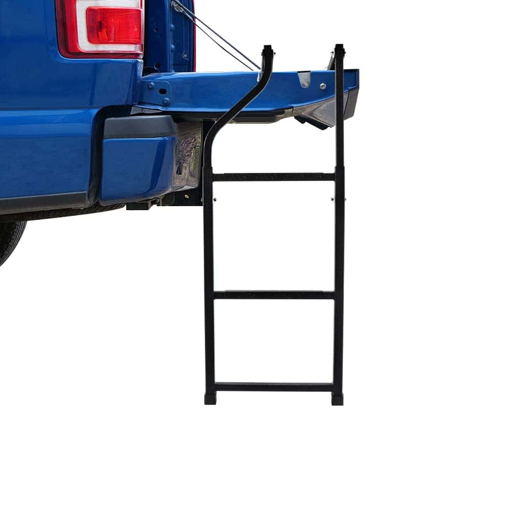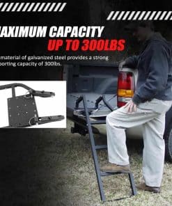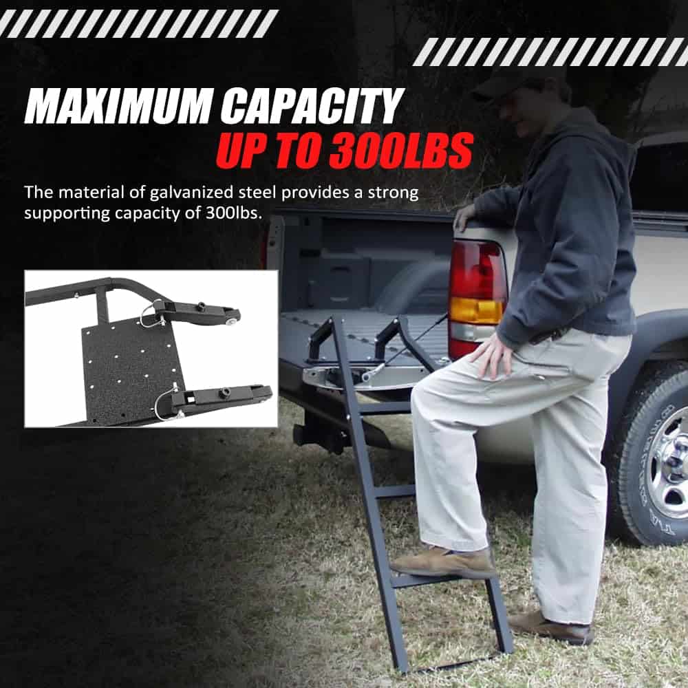 2. Construcción duradera: escalera universal para portón trasero de camión hecha de acero galvanizado resistente, con acabado negro recubierto de arrugas para resistencia a la corrosión y al óxido, la capacidad máxima es de hasta 300 lbs.