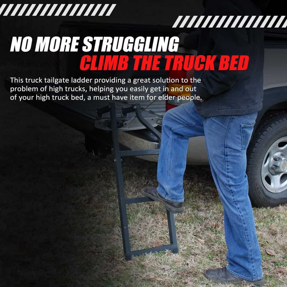 1. Fácil acceso a la cama de su camioneta: esta escalera para portón trasero de camión ofrece una gran solución al problema de los camiones altos, ayudándole a entrar y salir fácilmente de la cama de su camioneta alta, un artículo imprescindible para las personas mayores.