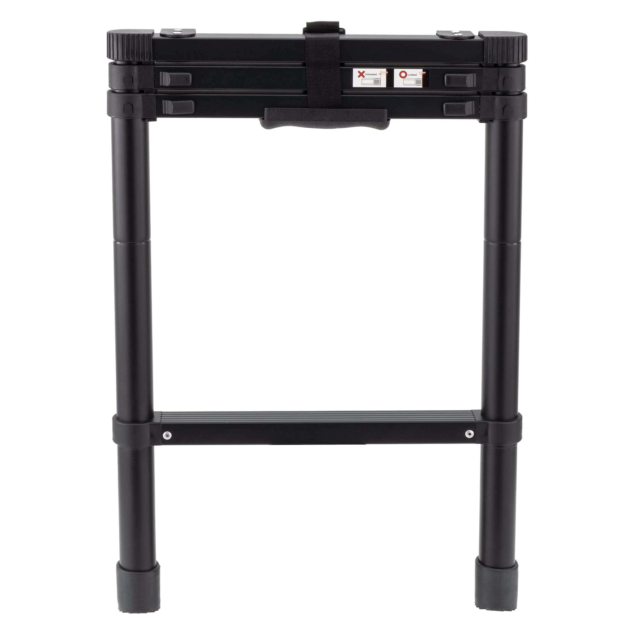 3. FÁCIL DE OPERAR: Los sencillos botones deslizantes facilitan la extensión o el plegado de la escalera, mientras que la correa y la hebilla la mantienen unida cuando está plegada. La empuñadura ergonómica facilita su transporte.