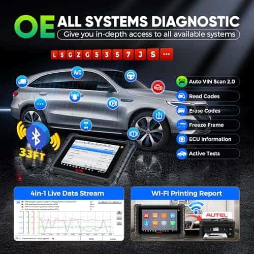 5. OE TODOS LOS SISTEMAS + AUTO SCAN 2.0 El escáner automotriz Autel MX900TS puede obtener un análisis de nivel OE del ECM, TCM, ABS, airbag, SAS, EVAP, TPMS, BMS y más sistemas disponibles a bordo. Leer/borrar códigos; Mostrar flujo de datos en vivo en texto o gráfico; verificar datos de congelación; hacer prueba activa; recuperar información del ECU, adaptación, etc. AutoScan 2.0 logra el Escaneo Automático en segundos, Ave 4X Más Rápido que los Competidores. tales como GM/BMW Ave Tiempo de Escaneo 8s, Chrysler/VAG/Ford 10s, Nissan/Toyota 20s, Honda 30s, Fiat/BENZ 40s, etc. 6. HARDWARE 8 PULGADAS 6X MÁS RÁPIDO El verdadero escáner 2-EN-1 MX900TS funciona 6X más rápido, y no podrás dejar de usarlo. Android 11 OS puede realizar operaciones de multitarea sin presión Pantalla de 8 pulgadas 1280 800 datos intuitivos ROCKCHIP RK3566 CPU realizar diagnósticos rápido y eficientemente 4GB de RAM y 64GB de ROM guardar más datos 7700mAh Batería dura más hasta 15 horas Doble Wi-Fi de 2.4GHz&5GHz 4X más rápida transmisión Cámara trasera de 8MP captura más detalles VCI V150 soporta DOIP& CAN FD, cubre más autos nuevos. 7. MÁS FUNCIONES EXTENDIDAS DE 2024 El escáner OBDII Autel MX900TS, igual que Snap-on Tools, tiene más funciones adicionales: CAN FD para 2019+ GM Protocolo DOIP para 2018+ Volvo, 2017+ Jaguar&Land Rover, modelos de chasis BMW F&G 2018+ FCA Autoauth (solo Autel) 2015+ Renault SGW ScanVIN/Licencia 3X más rápido Reconocimiento AutoVIN que los antiguos MP808S/ MP808BT PRO/ MS906 Trabaja con BT506 para verificar el estado de la batería en tiempo real. trabajo con MV108s Escaneo previo y posterior para comparación rápida de resultados Impresión WiFi, Escritorio Remoto, Autel Cloud, etc. 8. GARANTÍA DE 1 AÑO Y 3 IDIOMAS SOPORTADOS ¡El escáner de diagnóstico Autel MX900TS es altamente recomendado por mecánicos con 50 años de experiencia! Proporciona actualizaciones de software de 1 AÑO, respaldo de calidad de 1 Año, REEMPLAZO de 30 Días o REEMBOLSO COMPLETO y soporte técnico 24/7/365. Soporta inglés, español, portugués y puede ser utilizado en América del Sur y del Norte.