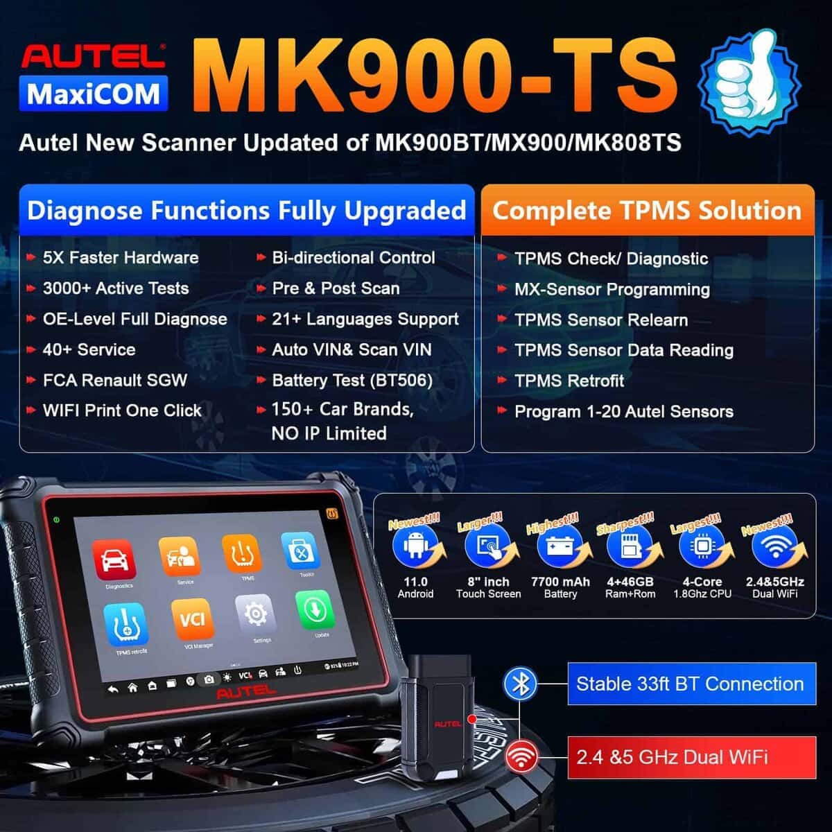 El Escáner Autel MaxiCOM MK900-TS es una actualización de los modelos MK900BT/MX900/MK808TS. Con hardware más avanzado, este escáner ofrece una gama de funciones mejoradas y ampliadas. Con funciones completas de TPMS, control bidireccional, más de 40 servicios especiales y compatibilidad con FCA y Renault SGW, el MK900-TS es una herramienta indispensable para cualquier taller de automóviles. Adicionalmente, su compatibilidad con una amplia gama de marcas y modelos de vehículos lo convierte en una opción versátil y confiable para solucionar problemas de diagnóstico en vehículos modernos. Este escáner original de Autel viene con un excelente servicio de asistencia y actualizaciones regulares de software para garantizar su eficacia y cobertura en operaciones de diagnóstico.