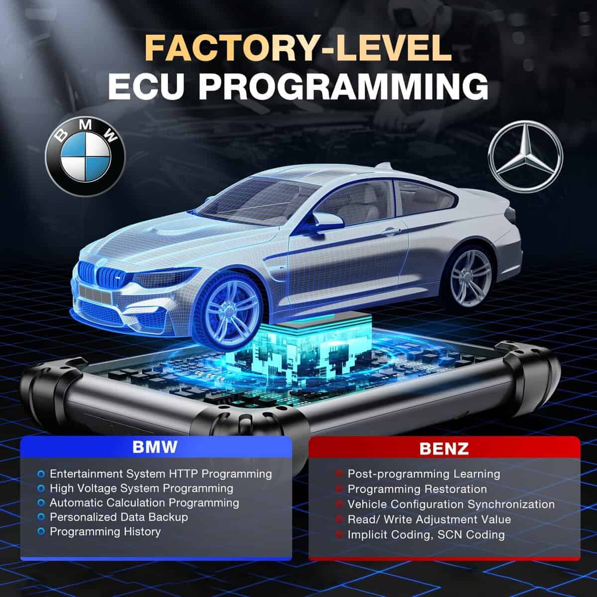 4. Codificación Avanzada de ECU El escáner automotriz Autel MaxiSys Elite 2 Pro permite a los técnicos realizar la codificación ECU para VW, Audi, Porsche, Benz, BMW. Puede usarlo para programar ECUs en blanco, actualizar o inicializar componentes, instalar módulos programables, activar funciones de alta gama, resolver problemas complejos del vehículo como la capacidad de conducción, la pérdida de potencia, mejorar la eficiencia del combustible, etc. La Codificación de ECU no es universal para todos los automóviles, por favor revise la compatibilidad antes de ordenar.