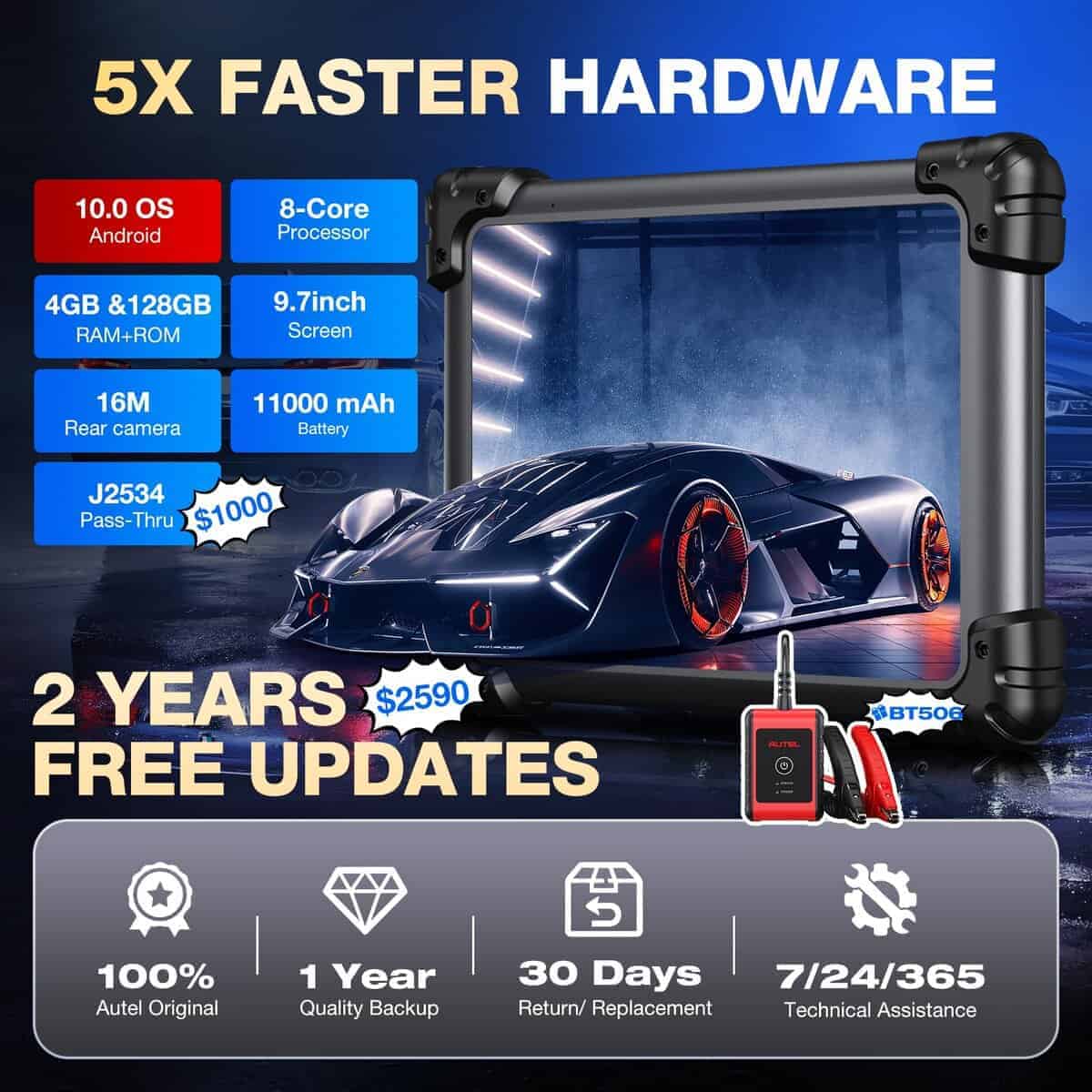 2. Escáner Autel de Alta Calidad, Mejora Completa de Elite II/ Elite/ MK908P Autel MaxiSys Elite II Pro está equipado con el mejor hardware: Procesador Octa-core más rápido, 4GB RAM +128GB ROM, Android 11.0 Nuevo Sistema Operativo, Cámaras de 5MP/16MP, Batería de 11000mAh. En funcionalidad, Autel Elite 2 Pro soporta Motor TruSpeed Repair, Auto Scan 2.0, Programación de ECU, 40+ Servicios y más importante: 2 Años de Actualizaciones (valoradas en $2590), es la mejor opción tanto para negocios de reparación de vehículos como para mecánicos profesionales.