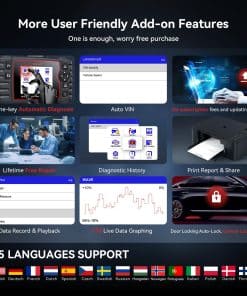 4. Funciones OBD2 Completas de Fábrica: Con diagnóstico automático, auto VIN, esta herramienta puede leer y borrar códigos rápidamente, leer y borrar fotogramas congelados, realizar seguimiento de 118 transmisiones de datos en vivo en un gráfico, etc.
