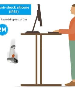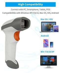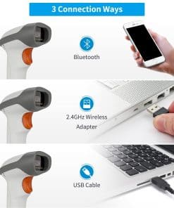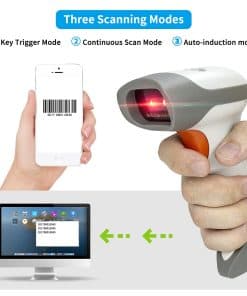 El escáner NetumScan puede funcionar a través de conexiones inalámbricas de 2.4GHz + USB 2.0 alámbricas. Es compatible con Bluetooth también. Batería integrada de 2000mAh, tiempo de espera de hasta 60 días, que le permite escanear códigos de barras en cada rincón de su biblioteca y almacén. También puede escanear códigos de barras con un cable USB que cargará el escáner al mismo tiempo. No necesita controlador. Modo de escaneo automático y de almacenamiento. Diseño profesional a prueba de golpes, fabricado con materiales ABS+PC de alta resistencia a los golpes, y la cubierta protectora de silicona puede evitar arañazos y fricciones al caer desde una altura de 2 metros. Resistente a polvo y humedad con tecnología IP54. Compatible con una amplia variedad de códigos 1D y 2D. Puede leer códigos de barras que se muestran en el monitor de la computadora.