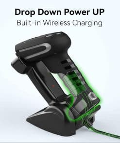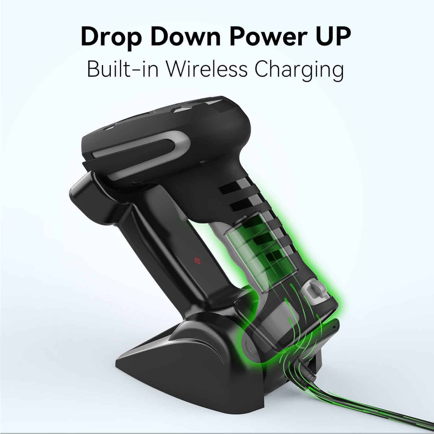 2. Carga Inalámbrica Sin Interrupciones La carga inalámbrica de Alacrity simplifica el proceso al eliminar la necesidad de cables o conexiones físicas. Simplemente coloca el escáner de códigos de barras en su base de carga para recargarlo sin esfuerzo. Este método rápido y conveniente asegura un flujo de trabajo ininterrumpido, aumentando la productividad general.