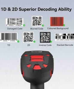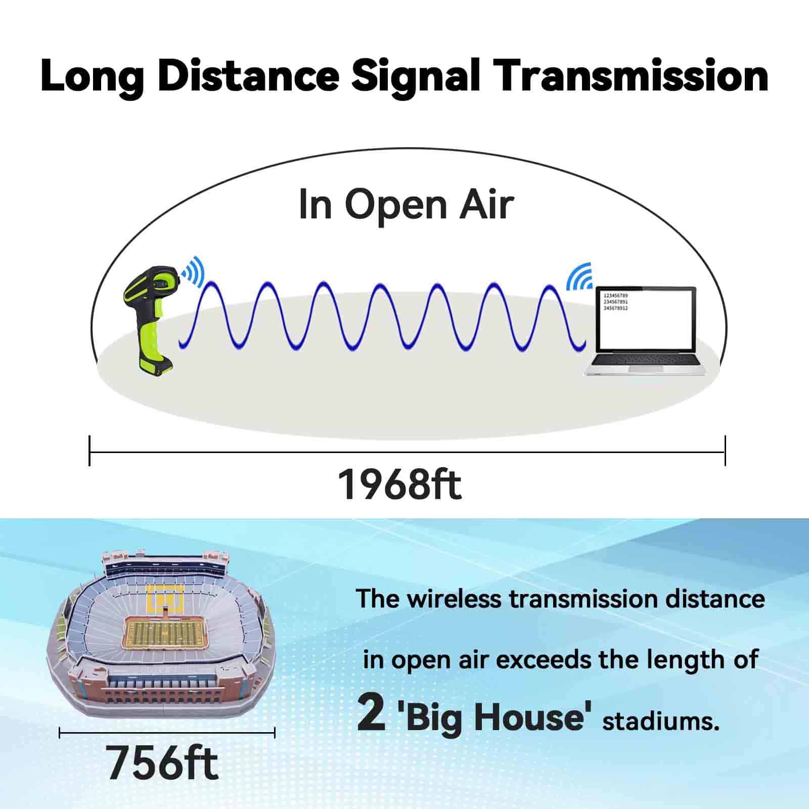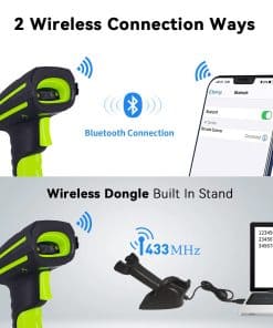 3. Accesibilidad Mejorada con Conectividad Versátil El escáner Alacrity combina tecnología inalámbrica de 433MHz y Bluetooth para ofrecer opciones duales de conectividad para una operación sin problemas. Con un rango de transmisión de hasta 250 metros en entornos abiertos, los usuarios pueden escanear códigos de barras fácilmente desde la distancia, aumentando la productividad y comodidad en varios entornos. Este rango extendido hace que el escaneo de códigos de barras en espacios grandes como almacenes, instalaciones de fabricación y tiendas minoristas sea más eficiente, permitiendo a los usuarios capturar datos desde ubicaciones remotas sin necesidad de estar físicamente cerca del escáner.