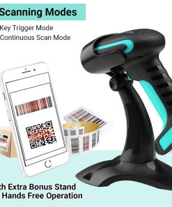 3. Conexiones 3-en-1 y Amplia Compatibilidad. El escáner de código de barras inalámbrico Tera 8100 puede funcionar con bluetooth y 2.4G inalámbrico y por cable USB. La distancia de transmisión puede ser de 100 m en un entorno sin barreras y 35 m en un entorno con obstáculos usando el dongle USB 2.4G. Puede conectarse con una variedad de dispositivos, como smartphones, computadoras, POS, iPhones, iPads. Además, también es compatible con varios sistemas operativos, como Windows 11/10/8/7/XP, Mac OS, iOS, Android, Linux.