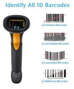 2. Profundidad de campo: desde el contacto hasta 17 pulgadas / 43 cm en símbolos 100% U.P.C./EAN. Patrón de escaneo: Línea única.