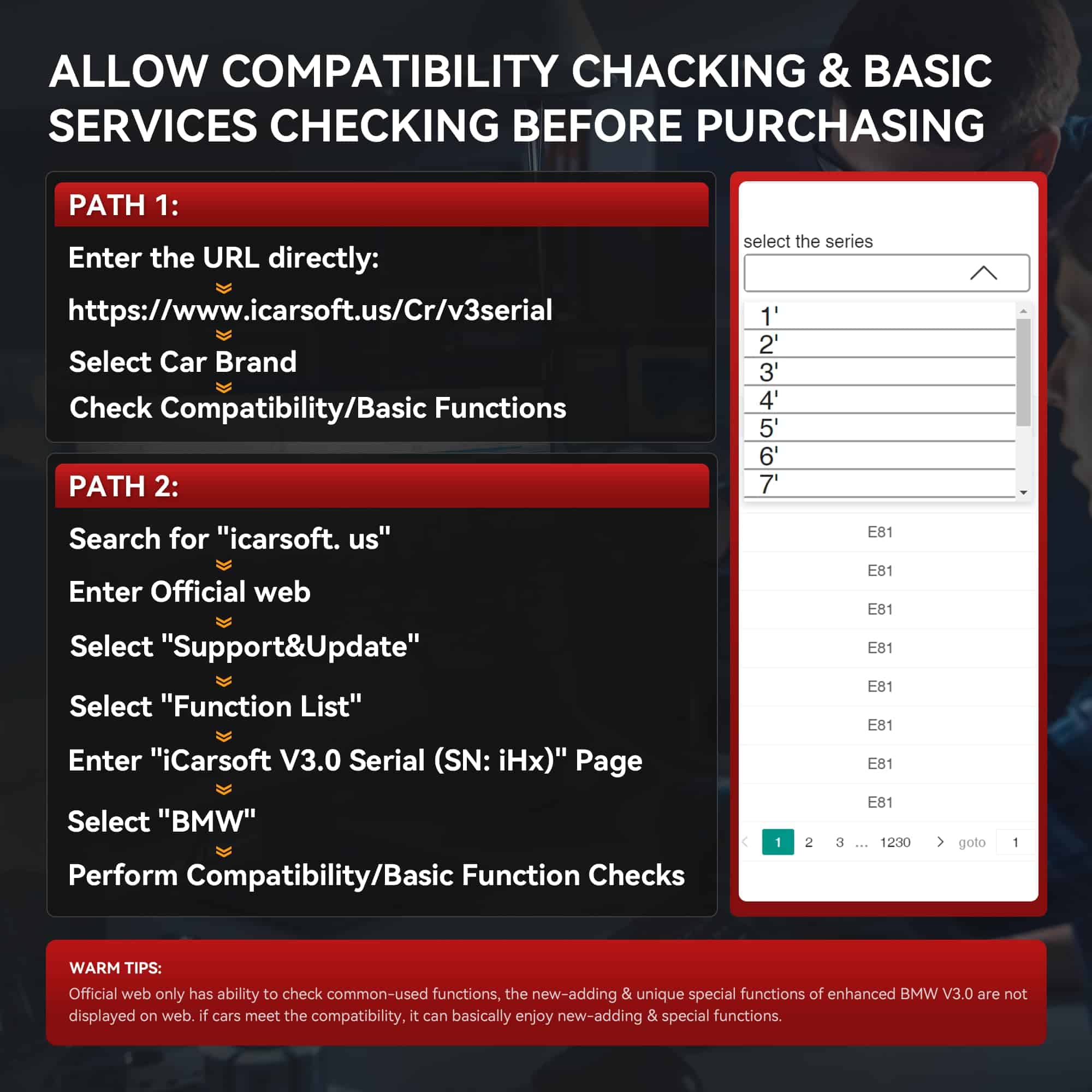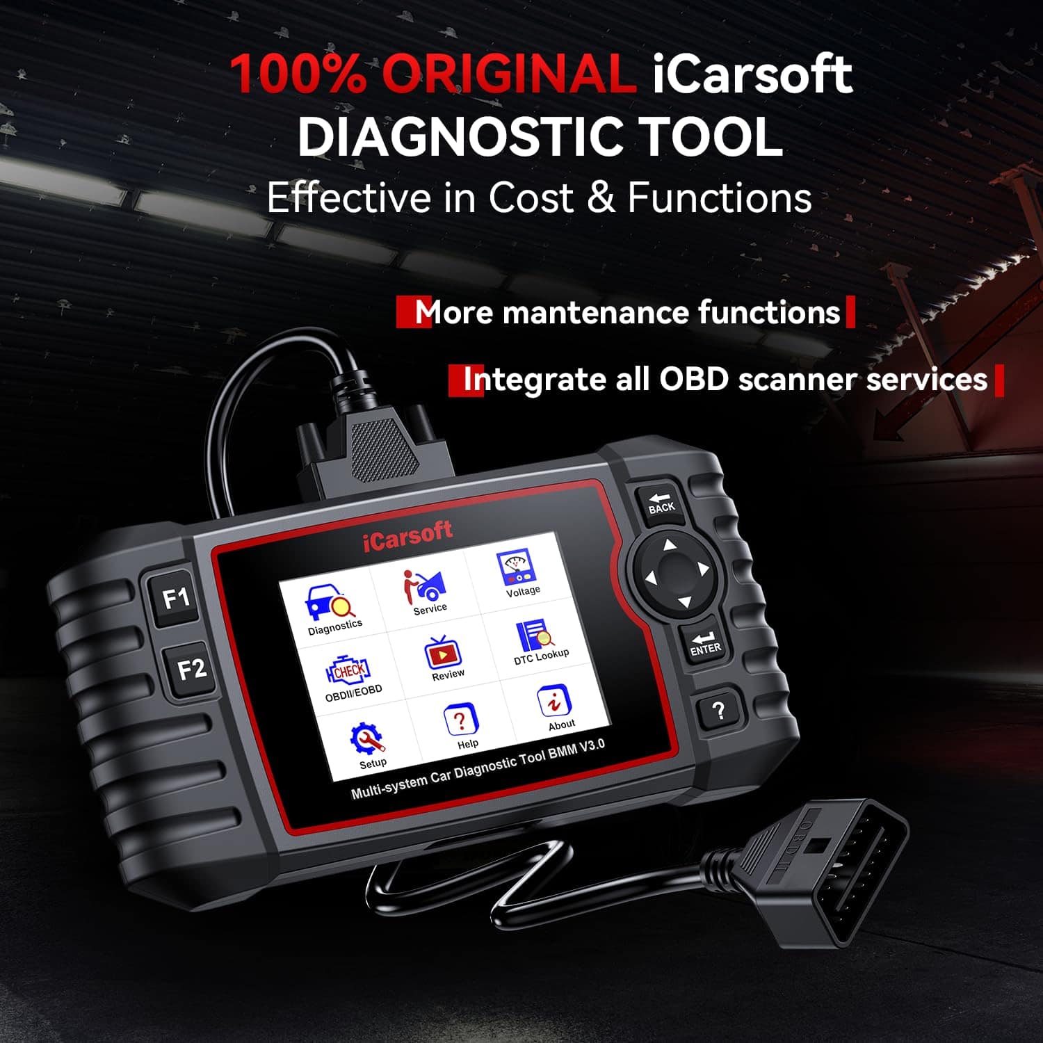 Escáner de diagnóstico iCarsoft BMM V3.0, la herramienta de escaneo bidireccional y prueba activa para el sistema BMW/Rolls-Royce, permite controlar bidireccionalmente y realizar pruebas activas en el sistema o componentes del vehículo, permitiendo comandar los módulos de los coches y recibir información de la ECU para realizar pruebas activas en componentes individuales, como EVAP/ABS Motor Pump/Ventanas/Techo solar y más, ayuda a localizar fallas de manera precisa en el menor tiempo posible, descubrir las causas de las fallas y resolver problemas, permitiéndole volver a aprender ciertos componentes después de realizar reparaciones o reemplazos. Escáner de diagnóstico de todos los sistemas de nivel OE para BMW iCarsoft BMM V3.0 realiza un servicio OBDII completo para escanear rápidamente y profundamente todos los sistemas, incluidos Motor, Airbag, Suspensión, SCM, BMS, Sistema Adaptativo, etc., para leer/borrar códigos, escanear Auto VIN, Identificar la información del coche, Prueba rápida, restablecimiento/reaprendizaje de módulos, Unidad de Control, Servicio y Borrado Rápido, transmisión de datos en vivo, biblioteca integrada de DTC, reproducción de datos y impresión, generar un informe de salud del vehículo. Registro avanzado de batería y codificación de ECU para reducir el número de cortes de energía del coche y garantizar el uso seguro de la batería, la herramienta de escaneo iCarsoft BMM V3.0 para BMW/Rolls-Royce/Mini puede completar la función de registro de batería a través del registro de MBS después de reemplazar la batería. Rápido y fácil de operar. La herramienta de escaneo de diagnóstico de automóviles BMM V3.0 admite la codificación de ECU para volver a codificar ECUs, corregir parámetros correspondientes, emparejar, aprender, codificar módulos ECU, actualizar la coordinación de ECU para que coincida con el sistema de control del vehículo. Uso fácil + gráfico de datos en vivo: escanee la información del coche y los sistemas del vehículo con un solo toque. Vista intuitiva de los datos dinámicos en vivo para ayudarlo a analizar el parámetro fácilmente (algunos datos no dinámicos se muestran en texto). Puede guardar su informe del vehículo o informe personalizado o compartir/imprimir informes. Garantía completa + actualización gratuita de por vida: el escáner de diagnóstico iCarsoft BMM V3.0 para BMW/MINI/Rolls-Royce le ayuda a realizar mantenimiento diario por su cuenta para ahorrar una tonelada de dinero en reparaciones en el concesionario. Confianza en la CALIDAD, ofrecemos garantía de 1 año + actualización gratuita de por vida + reparación gratuita de hardware de por vida (costos de logística excluidos) + soporte técnico de por vida + servicio postventa las 24 horas, los 7 días de la semana, los 365 días del año de ingenieros técnicos. Confianza mutua: iCarsoft siempre cree que los clientes deben tener el 100% de propiedad del producto después de su entrega, por lo que iCarsoft no cobra por la actualización de software y no tiene tarifa de suscripción, los clientes de iCarsoft pueden actualizar de por vida sus escáneres para obtener los últimos servicios. Creemos firmemente que un producto está diseñado para resolver problemas de los clientes en lugar de para cobrar tarifas de actualización o suscripción año tras año. Por lo tanto, los productos de iCarsoft han ganado la confianza de millones de mecánicos en todo el mundo.