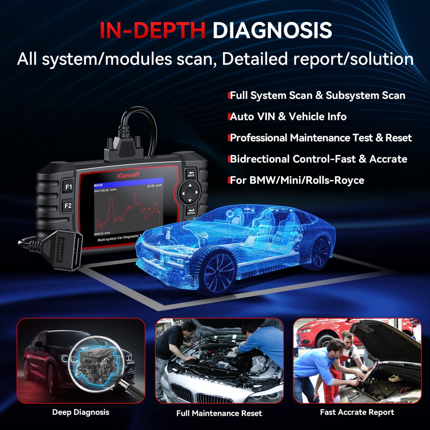 Escáner de diagnóstico iCarsoft para BMW/Rolls-Royce/Mini