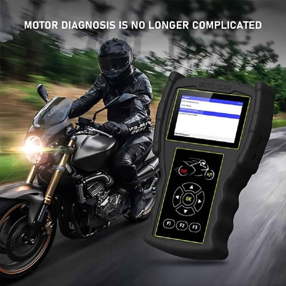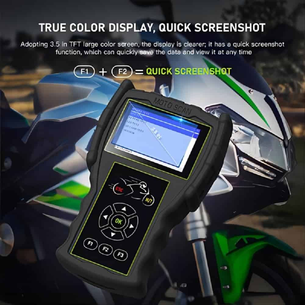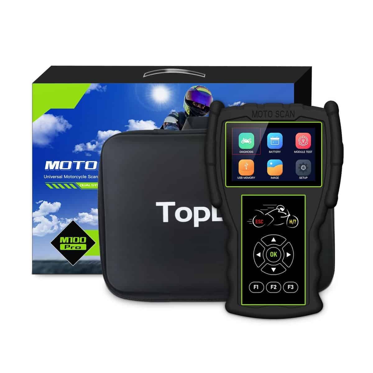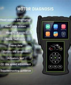 El escáner JDiag M100 Pro Moto es la nueva generación de herramientas de diagnóstico de motocicletas portátiles, cubre prácticamente todas las funciones de diagnóstico de los principales fabricantes. Ayuda al técnico a diagnosticar problemas y realizar reparaciones de manera más rápida; muchas procedimientos comunes están incluidos en la herramienta para que el técnico pueda seguirlos (inyectores, encendido, bobinas, bomba de combustible, etc.). Permite al técnico realizar procedimientos de servicio de fábrica como restablecer la luz de servicio, desbloquear el inmovilizador y configurar el inmovilizador/alarma, ajustar la inyección (COTrimmer), ajustar el sensor de posición de la válvula de aceleración (TPS), restablecer parámetros autoadaptables y hacer ajustes de ralentí. La herramienta muestra datos en tiempo real, muestra datos de la ECU, lee fallos almacenados (historial) o datos en tiempo real (RPM, voltaje de batería, ángulo de la válvula de aceleración).