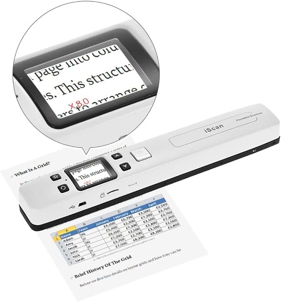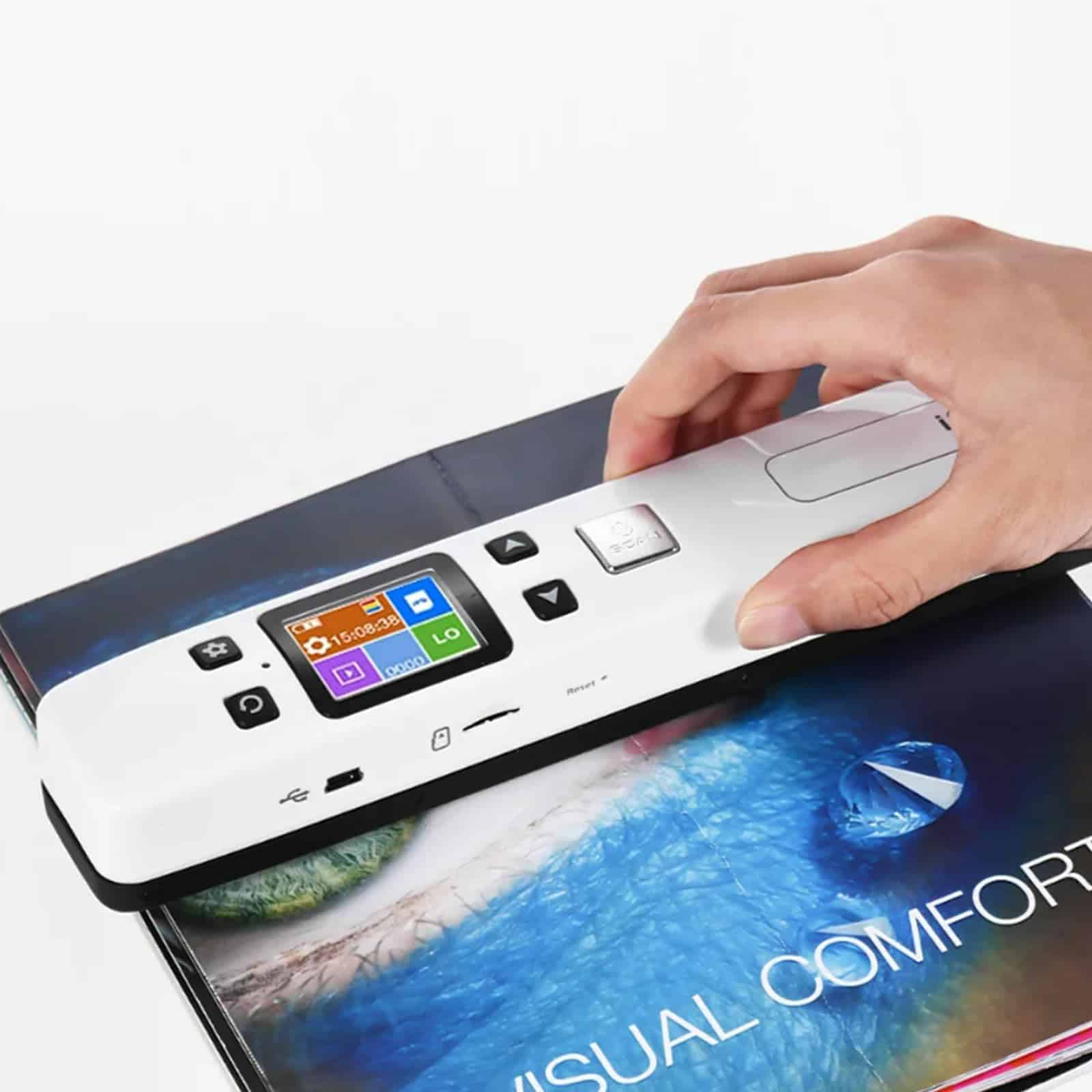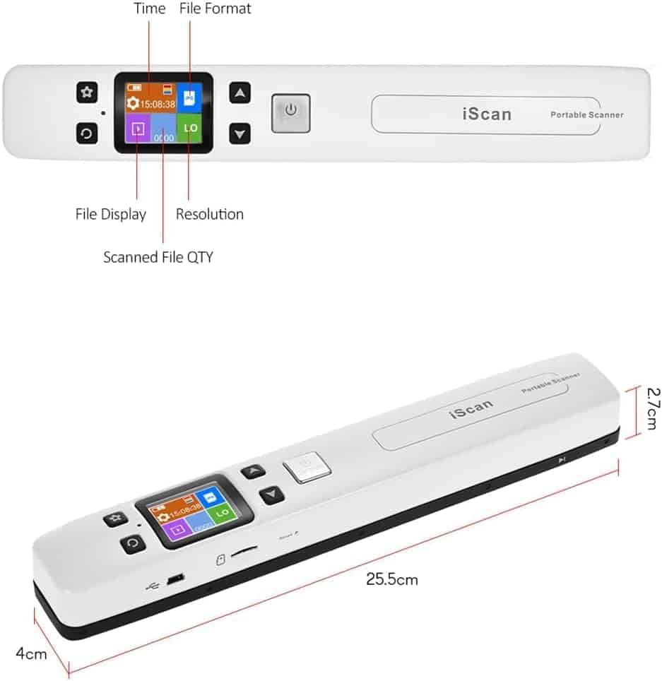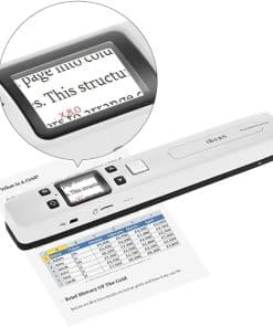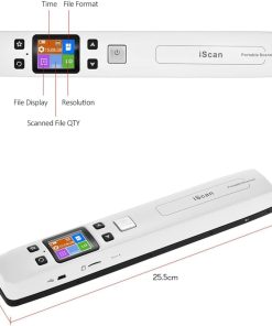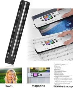 Cómo usar el Escáner Portátil: Carga el escáner como un teléfono primero (USB incluido), luego mantén presionado el botón «SCAN» durante 2 segundos para iniciar el escáner y elige la resolución HI. Tómate un tiempo para practicar escaneando para acostumbrarte a la velocidad de escaneo. Escanea verticalmente tu objetivo en un escritorio plano a una velocidad constante. Conecta tus dispositivos al WI-FI integrado del escáner para descargar las imágenes. Detalles del Escáner Portátil: No incluye tarjeta SD, Longitud: 9.5″. Peso: 0.44 libras. Funciones: Escaneo plano, previsualización de imágenes, WI-FI integrado, alimentación recargable, rueda auxiliar. Cable USB, manual de usuario y bolsa pequeña. Qué es un Escáner Portátil: El escáner portátil, un escáner plano de mano, está diseñado para escanear documentos, fotos, revistas, tareas, borradores, manuscritos y otros objetivos de escaneo. Ventajas y consejos: El escáner portátil puede convertir tus objetivos en papel en archivos digitales de alta claridad (300-1050 dpi) en 5 segundos. La tarjeta SD de 16 GB almacenará miles de archivos. El escáner es compatible con sistemas Android, iOS, Mac, Windows 7/8/10/XP y Linux (para transmisión de archivos). Atención, es un WI-FI integrado y no se conecta a nuestro WI-FI doméstico. Cómo nos ayudará un escáner: El escáner portátil puede ayudarnos a digitalizar fotos de diferentes tamaños.