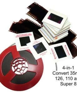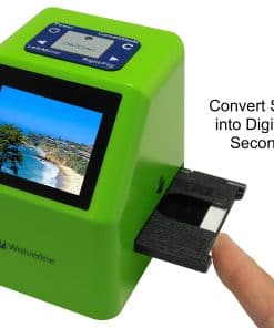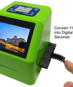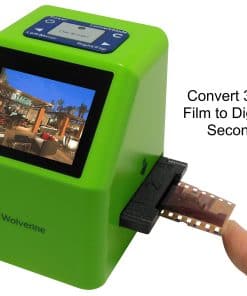 Wolverine F2D Super Plus 4 en 1 de 20 megapíxeles, convierte películas de 35 mm, 126kpk, 110 y Super 8 mm en digitales en SEGUNDOS. Independiente, no se necesita computadora o software. Ahora puedes tomar todas esas pilas de diapositivas de 35 mm, 126, 110 y películas Super 8 y convertirlas en imágenes JPEG digitales para compartir y preservarlas para siempre. Wolverine ha creado un dispositivo muy fácil de usar para convertir toda tu película en imágenes digitales de 20 megapíxeles en segundos. Tan simple de usar que solo requiere presionar un botón. No se necesita computadora ni software. Úsalo directamente de la caja para convertir toda tu película enchufándolo a un enchufe de CA o a cualquier puerto USB. Todas las imágenes se guardan en su memoria interna o en una tarjeta de memoria SD/SDHC opcional. Se conecta fácilmente a cualquier PC con Windows o MAC para transferir imágenes o verlas en la televisión (cable de TV no incluido). CARACTERÍSTICAS: Conversor de película a digital 4 en 1. Módulo de cámara de 4 lentes para una captura de imágenes mejorada. Adaptadores de carga rápida únicos para cargar rápidamente diapositivas y negativos. Convierte diapositivas y negativos de 35 mm, 110, 126KPK y Super 8 en digitales en solo TRES SEGUNDOS. Independiente, no se necesita computadora o software. Guarda imágenes en memoria interna (hasta 40 imágenes) o en tarjetas SD/SDHC opcionales. Pantalla a color de 2,4 pulgadas. Conector de salida de TV para previsualizar y reproducir imágenes guardadas en la televisión (cable no incluido). Ajuste automático y manual de brillo y color. Compatible con Mac y PC. INCLUYE: Unidad F2D Super Plus, Adaptador de película negativa 135/126, Adaptador de diapositivas 135/126, Inserto de negativos 110, Inserto de película Super 8, Adaptador de corriente CA-USB, Cable USB, Varilla de limpieza, Manual de usuario.