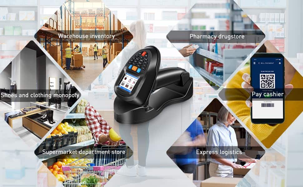 3. Diseño elegante: Equipado con una pantalla a color HD de 2.2 pulgadas, el escáner de códigos de barras inalámbrico JRHC puede mostrar el canal inalámbrico utilizado, la fuerza de la señal inalámbrica y la energía de la batería. Los usuarios pueden ver el contenido, tipo y longitud del código de barras en tiempo real. Multi-función: escáner con cable / inalámbrico, modo de inventario, etc.