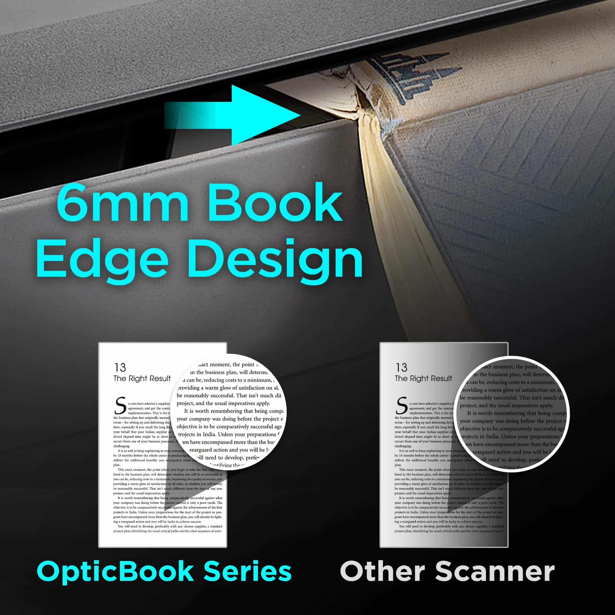 2. Diseño especial de 6 mm en el borde del libro: la tecnología patentada SEE (Elemento de Eliminación de Sombras) elimina la sombra del lomo del libro y la distorsión del texto de los libros tradicionales al copiar y escanear.